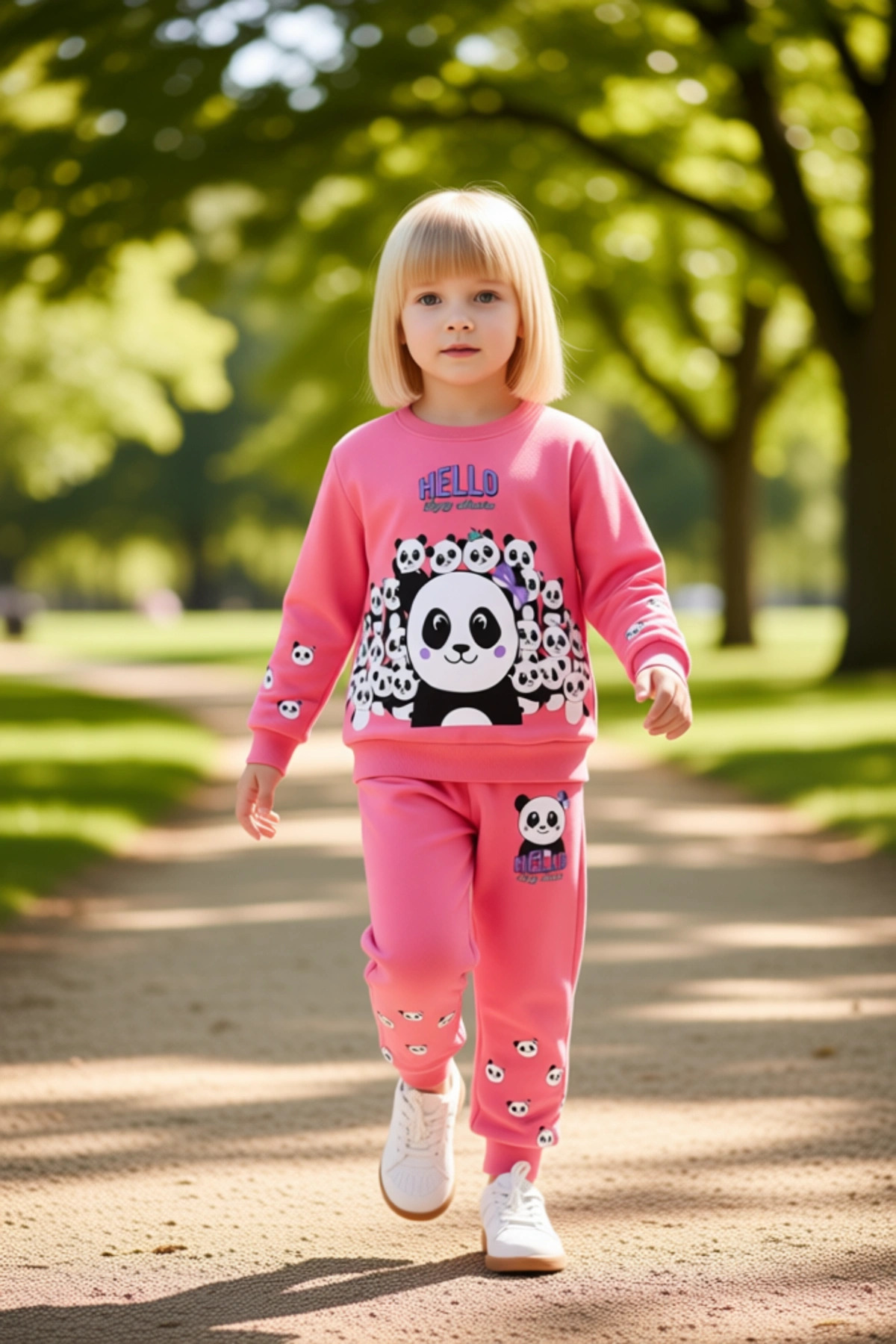 Kız Çocuk Pamuklu Baskılı Bisiklet Yaka Oversize Sweatshirt ve Tayt Seti Kaliteli Şık Rahat