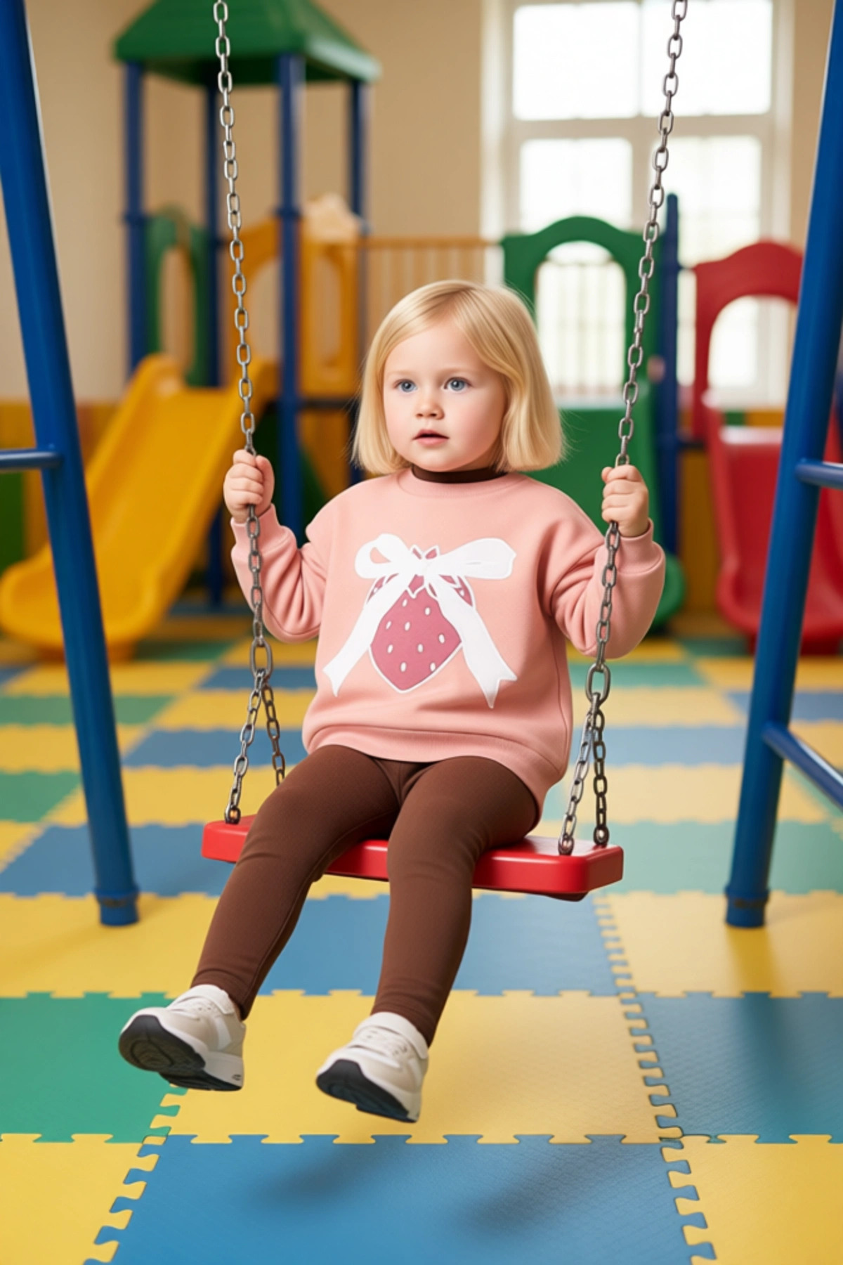 Küçük modacıların gardıroplarına neşe katacak bu özel takım, konfor ve stili bir araya getiriyor. Üst kısımda yer alan pamuklu, bisiklet yakalı ve oversize kesimli sweatshirt, üzerinde dikkat çekici bir baskı ile süslenmiştir. Bu tasarım, hem rahat bir kullanım sunar hem de çocuğunuzun stilini ön plana çıbeyaz