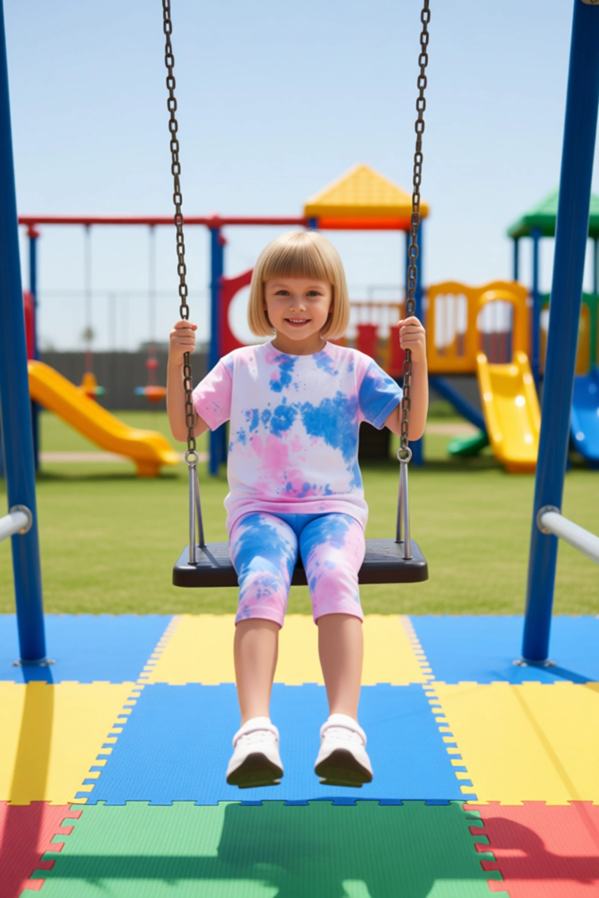 Bu kız çocuk takımı, %95 pamuk ve %5 elastan içeren örme kumaşıyla üretilmiştir. Yumuşak dokusu ve esnek yapısı, çocuğunuzun gün boyu rahat etmesini sağlar. Takım, bisiklet yakalı, kısa kollu bir t-shirt ve uyumlu bir tayttan oluşmaktadır. T-shirt’ün regular kalıbı ve basic silueti, her türlü aktiviteye uyum sağlar. Tayt ise esnek beli sayesinde hareket özgürlüğünü kısıtlamaz. Her iki parça da, canlı ve göz alıcı batik deseniyle dikkat çeker. Bu desen, her ürüne özgün bir karakter kazandırır ve çocuğunuzun stilini yansıtır. Lounge ve ev içi kullanım için mükemmel bir seçenek olan bu takım, aynı zamanda yaz aylarında da ferah bir kullanım sunar. Regular boyu ve sade tasarımı, kolay kombinlenebilirlik sunar. Kemer veya kuşak gibi ek detaylar içermeyen ürün, minimalist bir şıklık sunar. T01 yıkama talimatına uygun olarak kolayca bakımı yapılabilir. Türkiye’de üretilen bu takım, çocuğunuzun konforunu ve stilini bir araya getirir. Hassas ciltler için uygun olan pamuklu yapısı, nefes alabilen bir his verir. Çocuğunuzun enerjik yaşam tarzına uygun, dayanıklı ve şık bir alternatiftir. Farklı ve özgün bir görünüm arayanlar için idealdir. Bu takım, çocuğunuzun hem rahatlığını hem de kendine olan güvenini artıracaktır. Oyun zamanları ve dinlenme anları için ideal bir seçimdir. Kolay giyilip çıkarılabilmesi, pratik bir kullanım sunar. Gardırobuna renk ve neşe katacak bir parçadır.