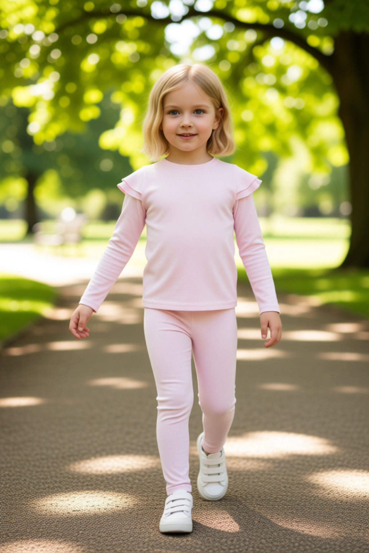 Kız Çocuk Pamuklu Fitilli Üst ve Geniş Paça Tayt Takımı Kaliteli Şık Rahat Günlük