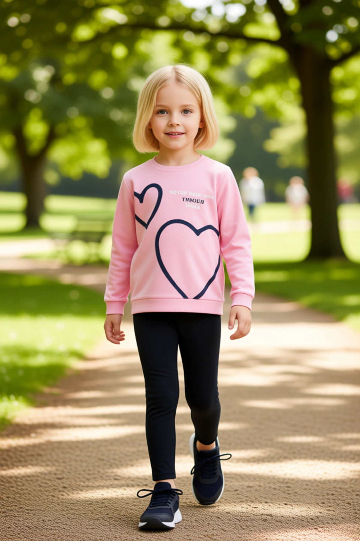 Kız Çocuk Pamuklu Kalp Baskılı Sloganlı Üst ve Esnek Tayt İkili Takım Kaliteli Şık Rahat