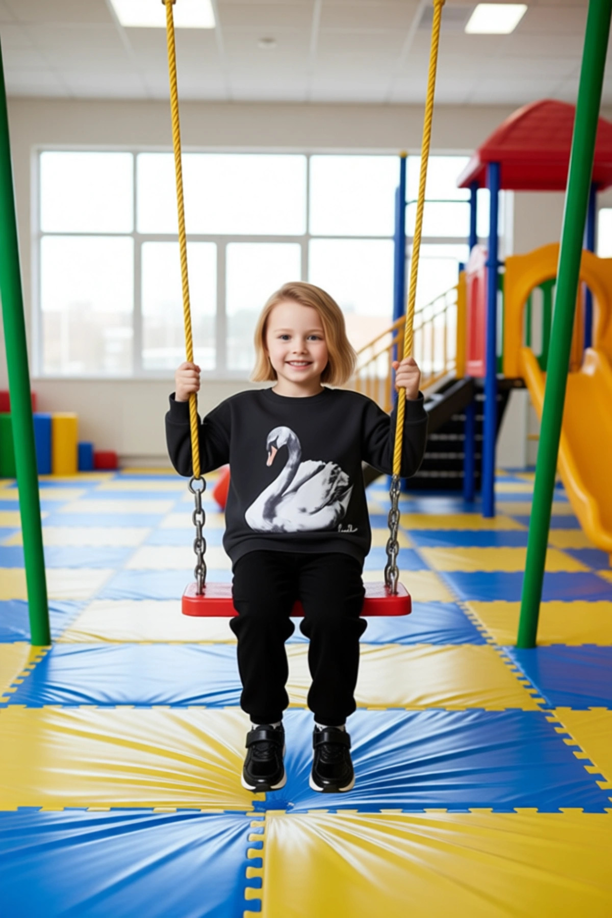 Küçük moda tutkunları için tasarlanmış bu eşofman takımı, hem rahatlığı hem de şık görünümü bir arada sunuyor. Üst kısım, bisiklet yaka ve uzun kollu olarak tasarlanmış olup, oversize kalıbı sayesinde hareket özgürlüğü sağlıyor. İç kısmında bulunan kalın polar astar, soğuk havalarda maksimum sıcaklık ve konfor sunarak çocuğunuzun üşümesini engelliyor. Üstün ön yüzünde yer alan dikkat çekici kuğu baskısı, takıma özgün bir hava katıyor. Bu baskı, canlılığı ve detaylarıyla çocuğunuzun ilgisini çekecek nitelikte. Kumaş bileşeni %60 pamuk ve %40 polyesterden oluşuyor, bu da hem yumuşak bir dokunuş hem de uzun ömürlü kullanım vadediyor. Alt kısım ise, esnek ve yumuşak örme kumaştan üretilmiş, geniş paça kesimiyle trend bir görünüm sunuyor. Bel kısmı lastikli olduğu için çocuğunuzun bedenine rahatça uyum sağlıyor ve gün boyu konforlu bir kullanım sunuyor. Bu takım, günlük kullanım için ideal bir seçenek. Okulda, evde veya dışarıda rahatlıkla giyilebilir. Kış sezonunun vazgeçilmez parçalarından biri olacak bu ürün, çocuğunuzun hem sıcak kalmasını hem de stil sahibi olmasını sağlıyor. Üretim yeri Türkiye olan bu ürün, yüksek kaliteli materyaller ve titiz işçilikle üretilmiştir. Bakım talimatlarına uyulduğu takdirde, uzun yıllar ilk günkü gibi kalacaktır. Animal desenin bir yorumu olan kuğu figürü, takıma sofistike bir dokunuş katıyor. Bisiklet yaka ve standart kol tipi, her türlü aktivite için uygun bir kullanım sunuyor. Bu eşofman takımı, kızınızın gardırobunda hem pratik hem de şık bir yere sahip olacak.