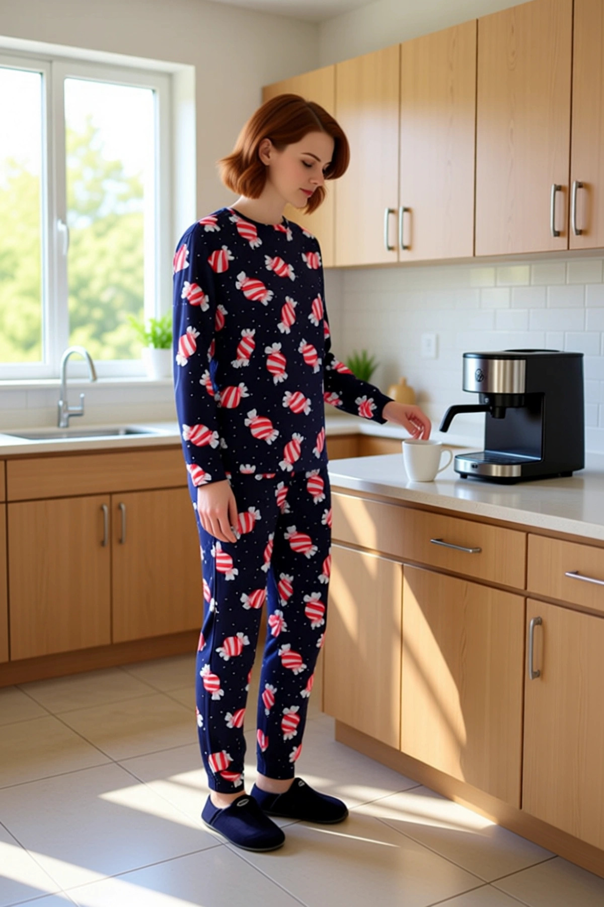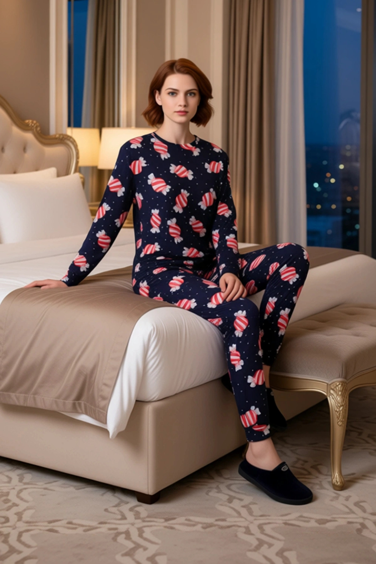Bu sevimli pijama takımı, küçük hanımların evdeki en rahat ve eğlenceli arkadaşı olacak. Lacivert zemin üzerine yerleştirilmiş renkli şeker desenleri, çocukların hayal dünyasını canlandırırken, %100 pamuk kumaşı cildin hassasiyetini göz önünde bulundurarak üretilmiştir. Nefes alabilen yapısı sayesinde çocuklar gece boyunca rahat bir uyku uyuyabilirler. Regular kalıbı, çocukların hareket özgürlüğünü kısıtlamadan oyun oynamalarına veya rahatça dinlenmelerine olanak tanır. Bu pijama takımı, çocukların hem uyku hem de ev içi aktiviteleri için ideal bir seçenektir. Dokuma tipi olan 30/1 openend süprem, kumaşa ekstra yumuşaklık ve dayanıklılık katarak uzun süreli kullanımını garanti eder. Takımın bisiklet yaka ve uzun kollu üst kısmı, çocukları soğuktan korurken, dar paça jogger alt kısmı hareketlerini kolaylaştırır. Standart kol kesimi ve normal bel detayı, çocukların gün boyu rahat etmesini sağlar. Örme kumaşın esnekliği, çocukların en hareketli anlarında bile onlara eşlik eder. Bu pijama takımı, çocukların cildine dost, yumuşak dokusu ve eğlenceli tasarımı ile onların favorisi olmaya adaydır. Hem uyku hem de oyun zamanlarında maksimum konfor sunar. Kış aylarında çocukların sıcak ve rahat kalmasını sağlayan bu pijama takımı, evde geçirilen zamanı daha keyifli hale getirir. Altına yumuşak bir ev ayakkabısı veya terlik ile kombinleyerek çocukların ev içinde rahatça dolaşmasını sağlayabilirsiniz. Bu takım, çocukların kendi başlarına giyip çıkarabilecekleri pratik bir tasarıma sahiptir. Makinede yıkanabilir olması, ebeveynler için büyük kolaylık sağlar. Çocuklarınız için hem şık hem de konforlu bir hediye arıyorsanız, bu pijama takımı doğru seçim olacaktır.