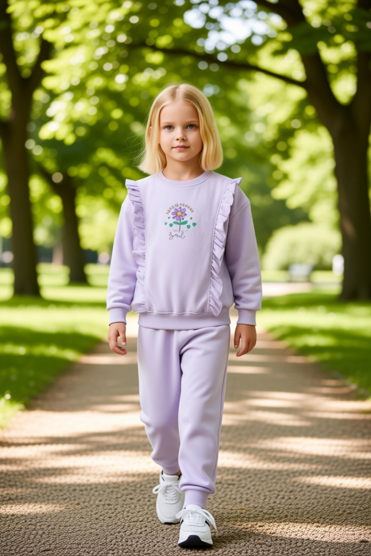 Küçük modaseverler için tasarlanmış bu rahat örme eşofman takımı, eğlenceli panda baskılarıyla dikkat çekiyor. Üst parçanın ön yüzünde büyük bir ana panda figürü ve çevresinde sıralanmış sevimli küçük pandalar bulunuyor. “HELLO” yazısı ve bir fiyonk detayı, tasarıma sevimli bir dokunuş katıyor. Bisiklet yaka ve standart uzun kollu tasarımı, soğuk havalarda maksimum konfor sağlar. Regular kalıbı, çocukların rahatça hareket etmesine olanak tanır. Eşofman altı da aynı tema üzerine küçük bir panda baskısıyla tamamlanmıştır. Bu takım, %75 pamuk, %20 polyester ve %5 elastan karışımıyla üretilmiştir. İki iplik penye dokuma tekniği, kumaşın yumuşaklığını ve kalitesini artırır. Günlük kullanım için ideal olan bu ürün, ‘Childish’ persona ile mükemmel uyum sağlar. Kış ayları için sıcak tutan yapısıyla öne çıkar. Türkiye’de üretilen bu takımın T52 yıkama talimatlarına uyulması önerilir. Pamuklu yapısı cilde nazik davranırken, polyester dayanıklılık ve kolay bakım sunar. Elastan ise hareket özgürlüğünü destekleyerek çocukların oyun ve aktivitelerinde rahat etmelerini sağlar. Bu eşofman takımı, kız çocuklarının hem şık görünmelerini hem de gün boyu rahat hissetmelerini sağlayacak harika bir seçenektir. Okul sonrası aktiviteler, hafta sonu gezileri veya evde dinlenme zamanları için idealdir. Sevimli panda teması, çocukların hayal gücünü besler ve onlara neşeli bir stil sunar.
