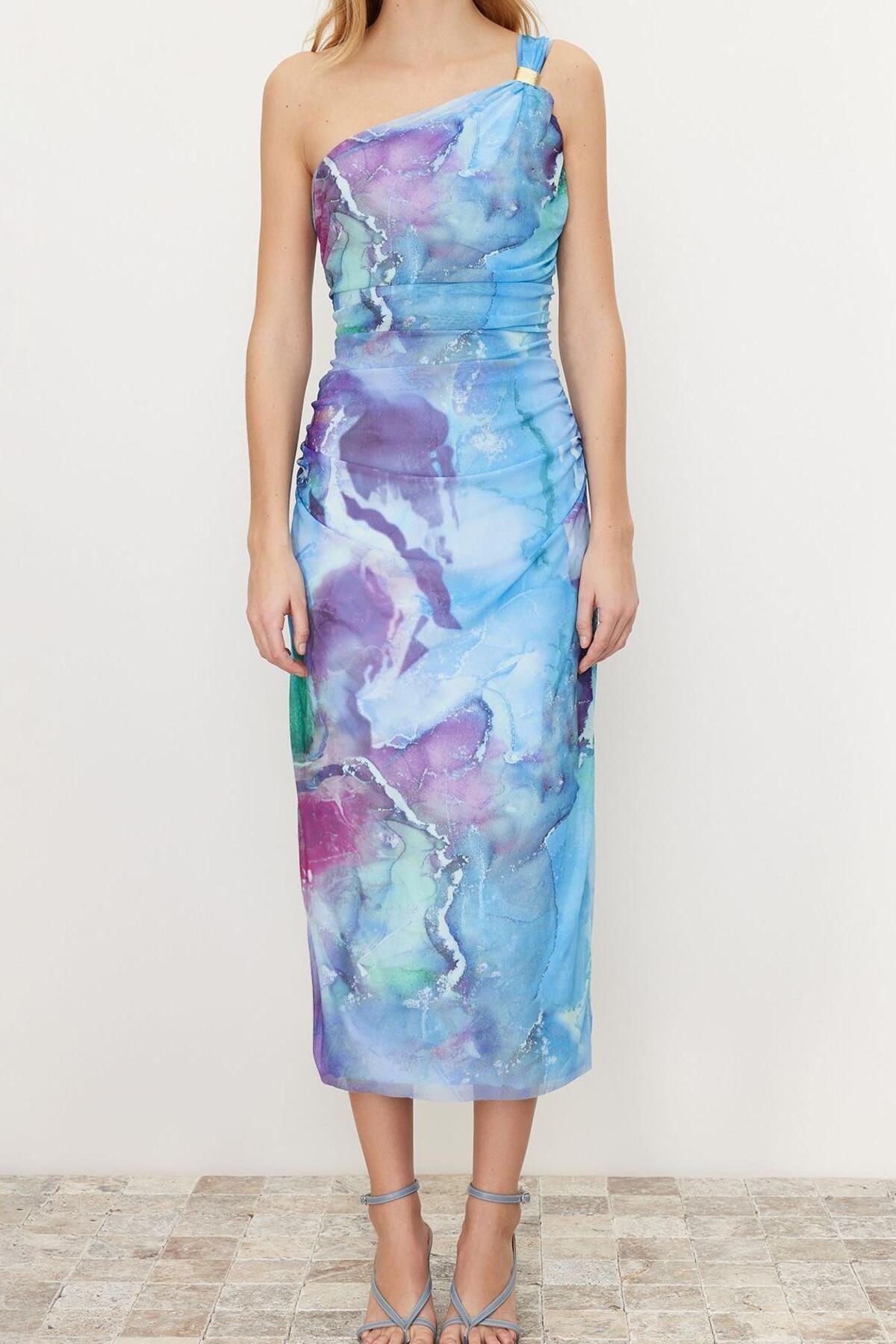 Moda Kolsuz Kollu Asimetrik Yaka Midi Elbise Çok Renkli Tek Kol Vücuda Oturan Aksesuar Detaylı Tül Esnek Örme Midi Kalem Elbise | Bu şık ve rahat elbise ile her ortamda enerjik ve dikkat çekici bir görünüm elde edin! | Model Bilgisi: Modelin Ölçüleri: Boy: 175cm(59) Göğüs: 80cm(35in) Bel: 58cm(22in) Kalça: 85cm(33in).; | Mankenin üzerindeki ürün S368 bedendir.; | Materyal Bileşeni: 94% Polyester,6% Elastan.; | Kumaş Tipi: Örme.; | Model Ön Boyu: 125,0 cm.; | Ürününüzü daha uzun süreli kullanabilmeniz ve ürününüze uygun bakım yapabilmeniz için lütfen aşağıda belirtilen yıkama talimatına uyunuz.; | Bedene oturan ve beden formunu öne çıkaran kalıptır.; | Stüdyo çekimlerinde renkler ışık farklılığından dolayı değişiklik gösterebilir.; |