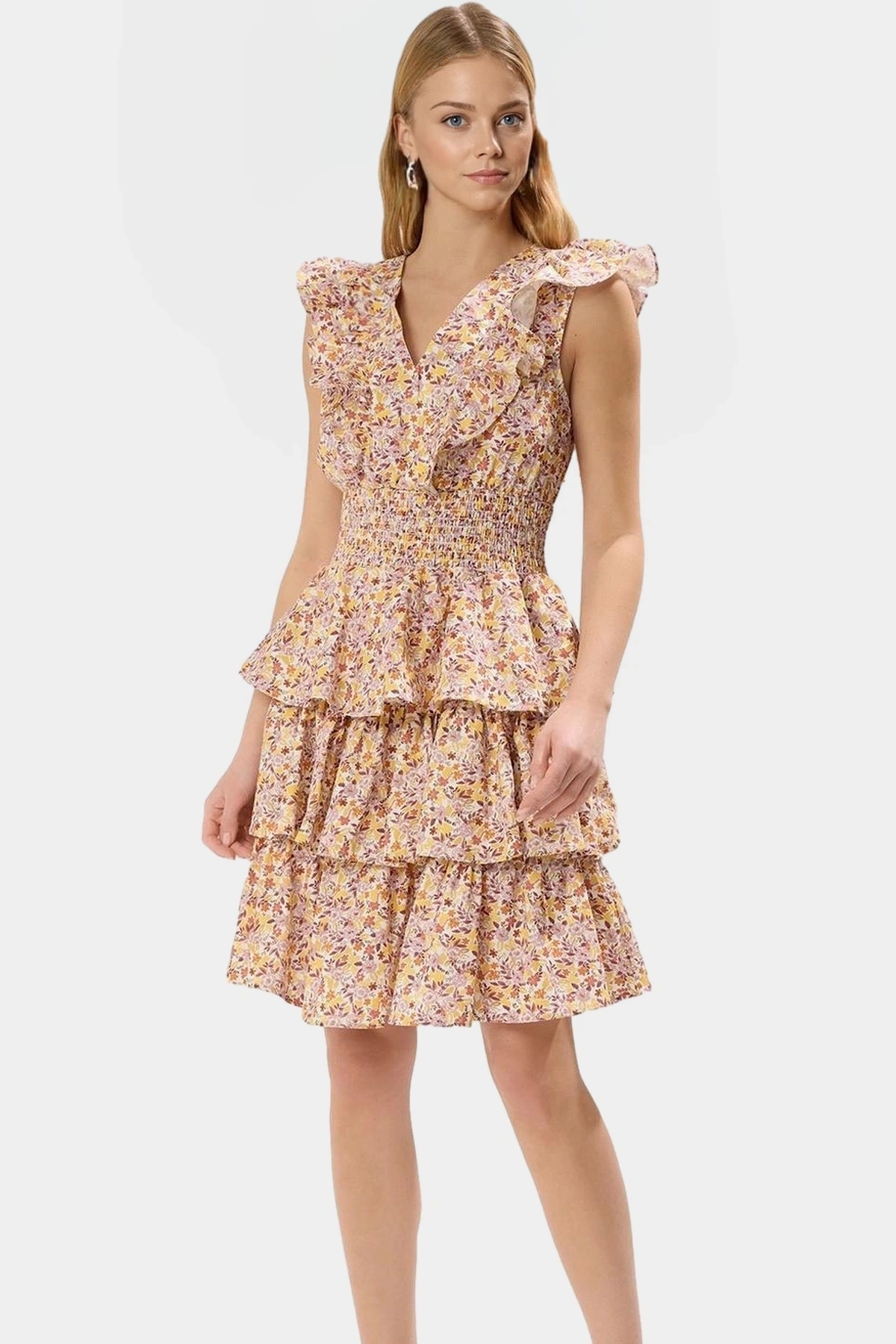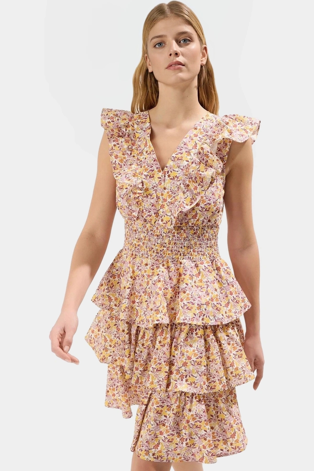 Göz alıcı çiçek deseni ve rahat kalıbıyla bu mini elbise, yaz günlerinin stil simgesi olmaya aday! Yüksek kaliteli %100 pamuk poplin kumaştan üretilen elbise, nefes alabilir yapısıyla gün boyu konfor sunuyor. Kolsuz tasarımı ve skater kalıbıyla hem şık hem de pratik bir seçenek. Belden açılan fırfırlı etek detayı ise elbiseye hareketlilik katıyor.