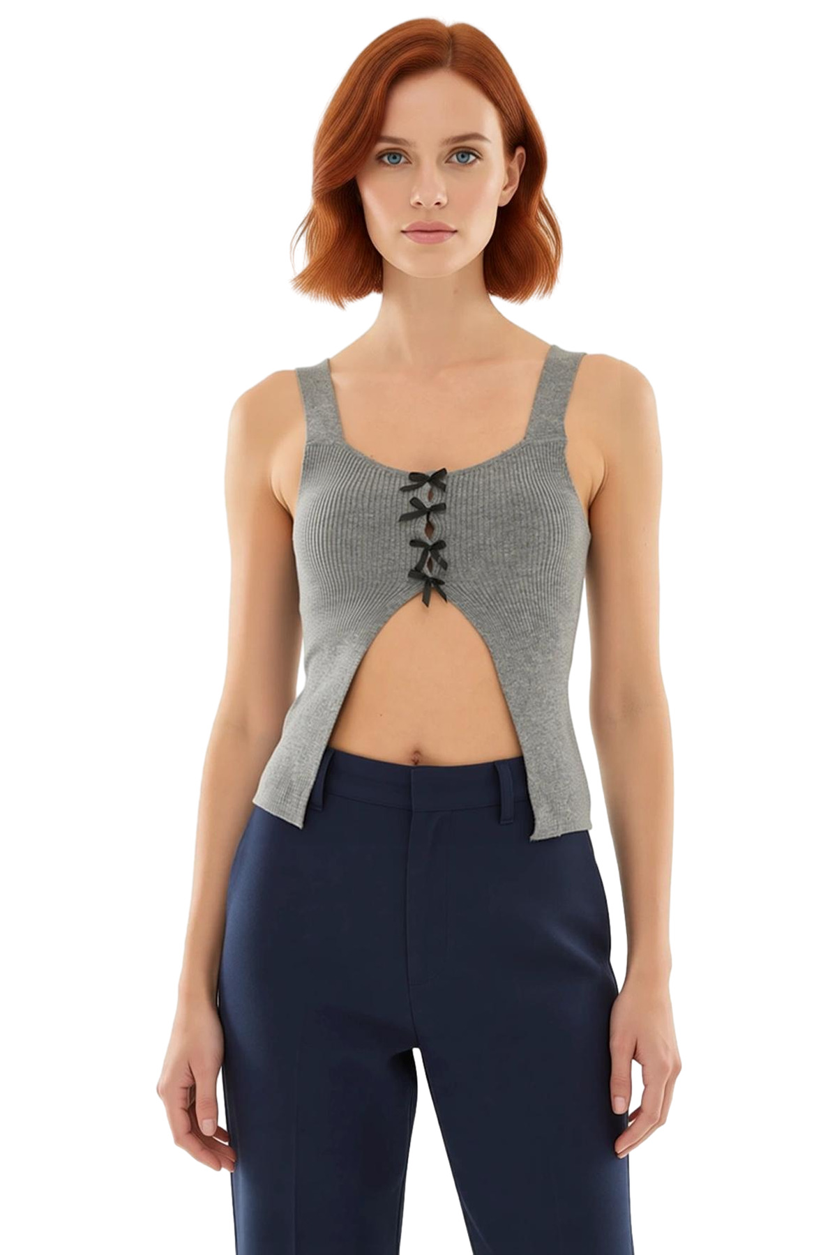 Yaz aylarının vazgeçilmezi olacak bu kolsuz triko bluz, özel kurdele detaylarıyla tarzınızı yansıtacak. Rahat ve şık bir görünüm sunan bluz, ince yapısıyla sıcak havalarda serin kalmanıza yardımcı olur. Fitted kalıbı ile vücut hatlarınızı zarifçe belirginleştirirken, günlük hayatta rahatlıkla kullanabileceğiniz bir seçenektir.