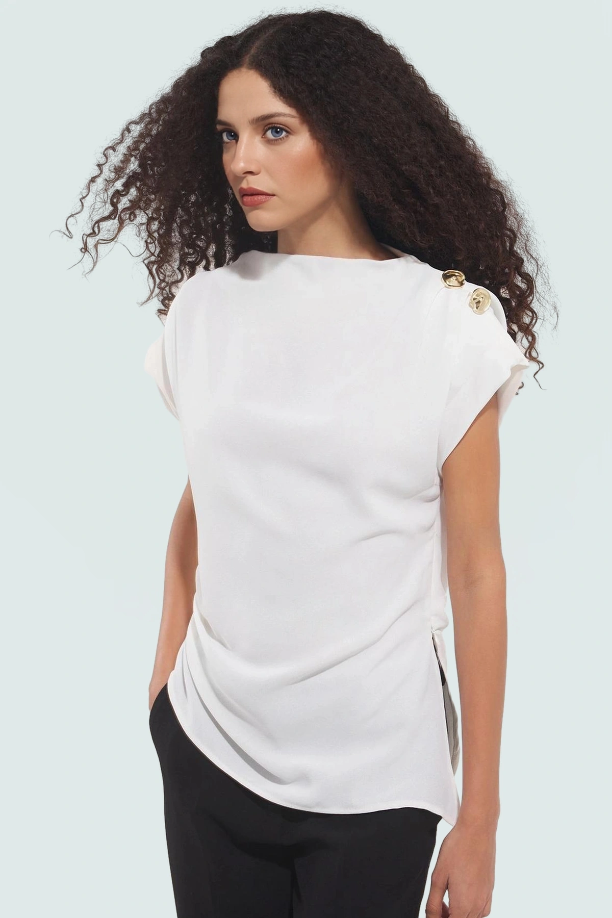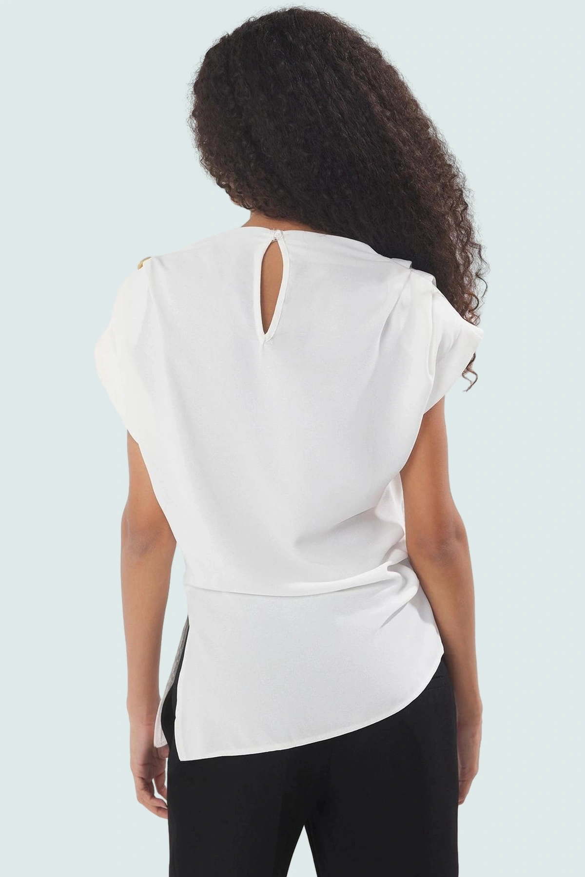 Günlük şıklığınıza sofistike bir dokunuş katacak, yazlık beyaz bluzümüzle tanışın! %100 polyester krep kumaştan üretilen bu bluz, nefes alabilir yapısıyla yaz sıcağında bile rahatlık sunar. Fitted kalıbı sayesinde vücut hatlarınızı zarifçe vurgular; dik yakası ise şık ve modern bir görünüm kazandırır. Kolsuz tasarımı ve regular boyu ile çeşitli kombinler için idealdir. Özel günlerinizden günlük yaşam stilinize kadar geniş bir kullanım yelpazesi sunar. Makinede düşük sıcaklıkta yıkanabilir özelliği ise kolay bakımıyla zamandan tasarruf etmenizi sağlar. Bu bluz, gardırobunuzda kendine özel bir yer edinecek ve her an şık görünmenizi sağlayacaktır. Astarsız yapısıyla hafif ve serin bir his sunar. İş hayatınızda ya da arkadaşlarınızla buluşmada, her ortamda şık ve özgüvenli hissetmenizi sağlar.