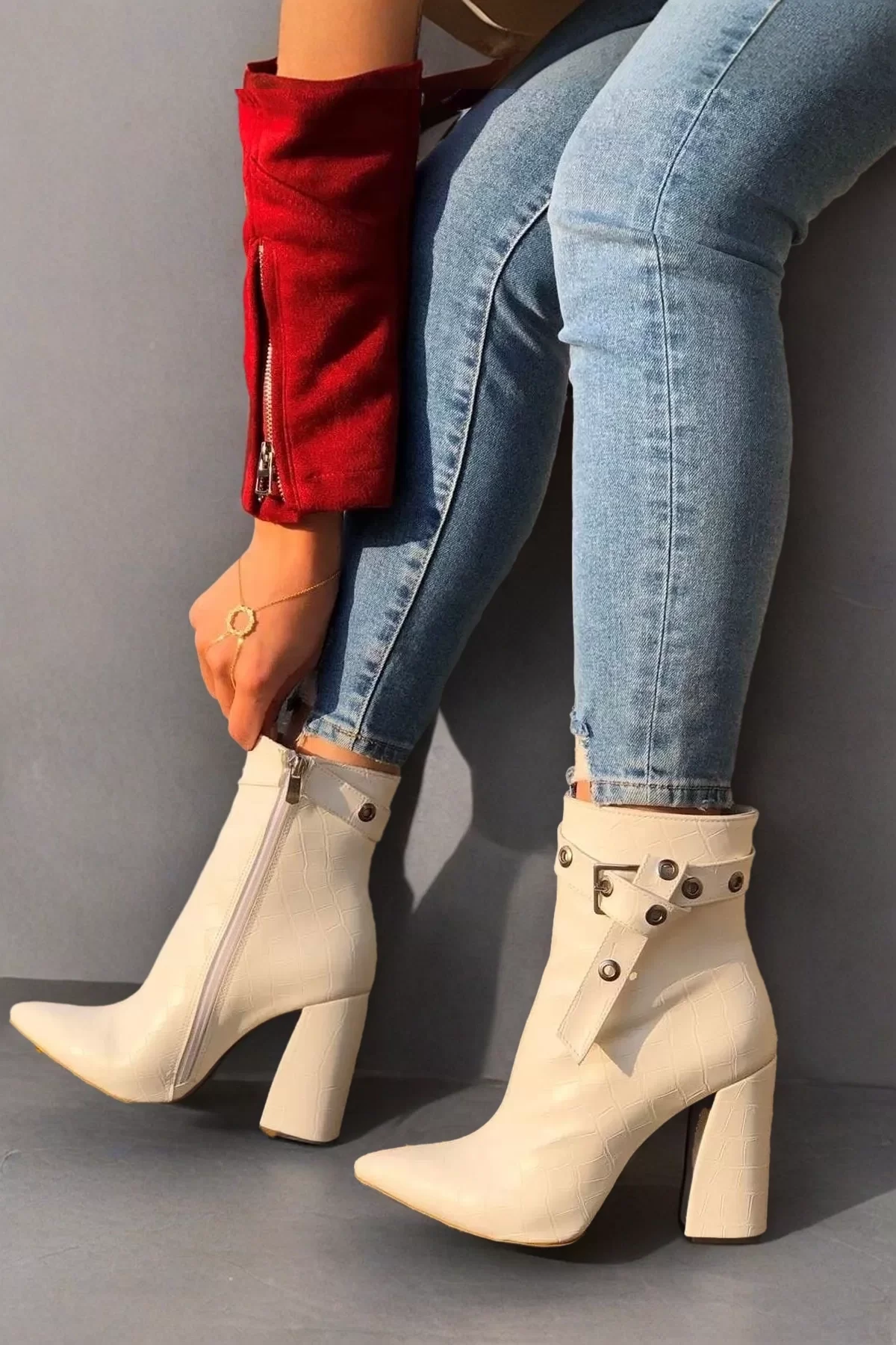 Kroko dokusuyla klasik bot formuna sofistike bir hava katan bu model, kalın topuğu ve sade çizgileriyle dikkat çeker. Fermuarlı yapısı sayesinde kolayca giyip çıkarabilir, petli yumuşak iç taban sayesinde her adımda konforun tadını çıkarabilirsiniz. Kapsül gardırobunuza modern ve güçlü bir dokunuş katmak istiyorsanız bu bot tam aradığınız parça.