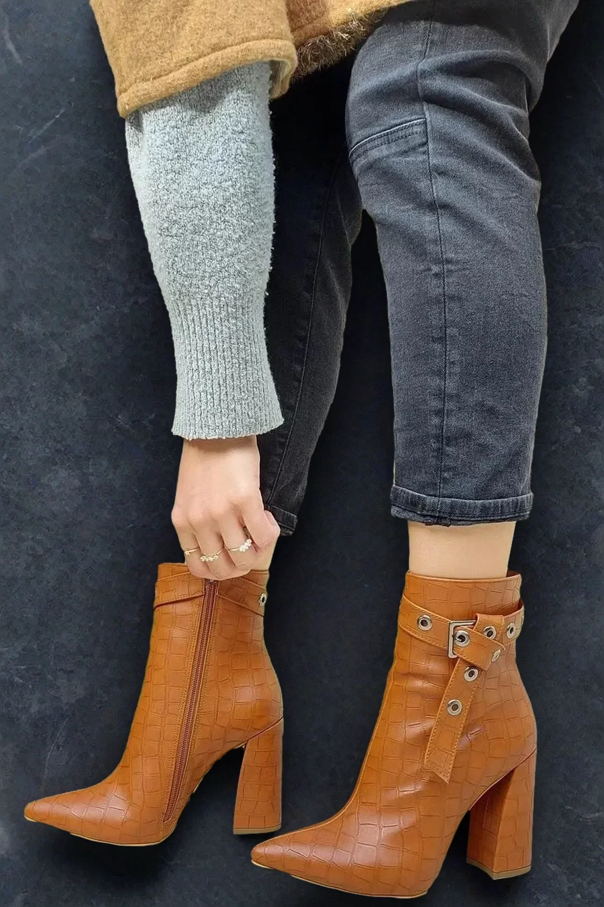 Kroko Dokulu Kadın Bot Kalın Topuklu Fermuarlı Rahat Tabanlı Günlük Şıklık İçin Ayakkabı