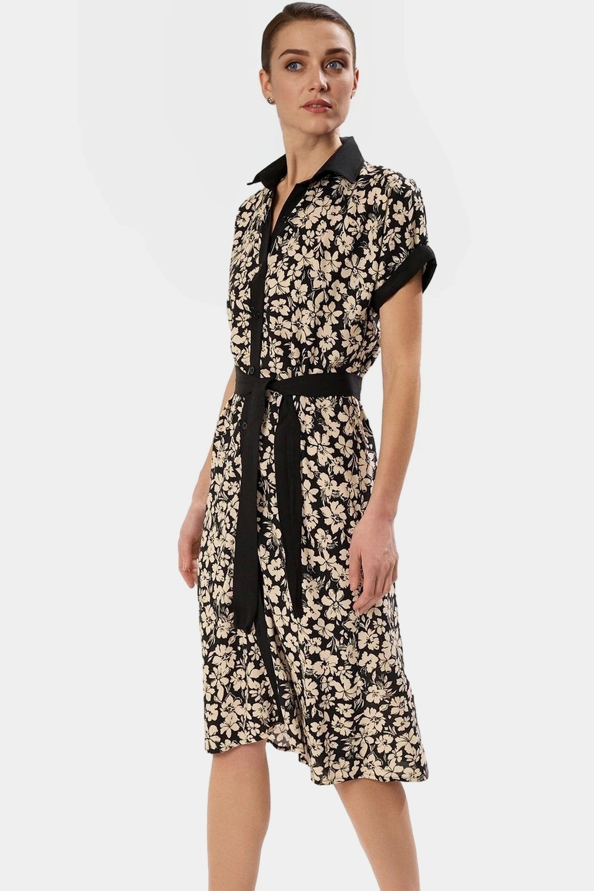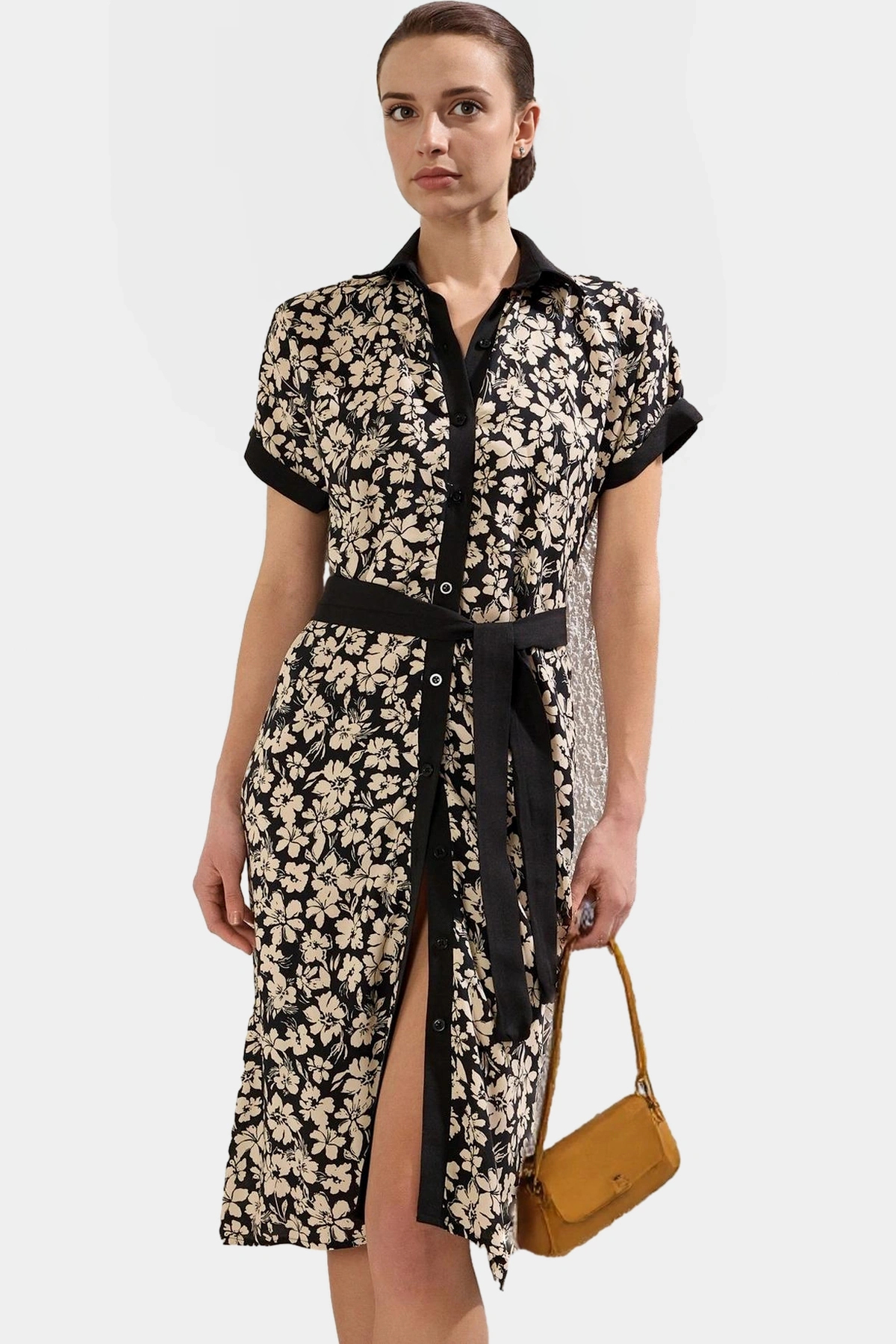 Midi Boy Viskoz Kumaş Çiçek Desenli Gömlek Elbise Rahat Kalıp Özenle Seçilmiş Konforlu Kesim