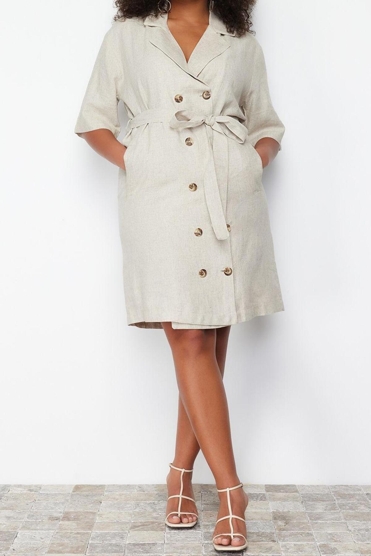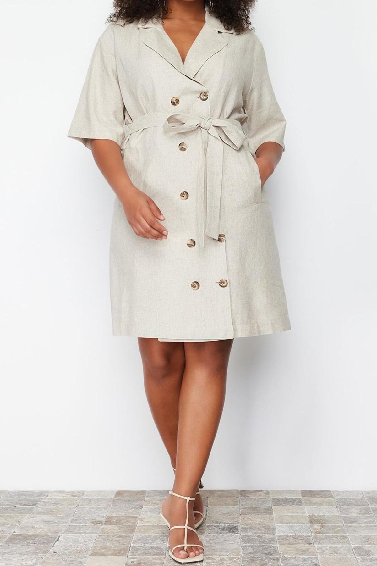 Moda Business Keten Görünümlü Dokuma Ceket Yaka Kısa Kol Ceket Elbise Midi Boy Büyük Beden Elbise ile zahmetsiz stil keşfedin. ; business için mükemmeldir, bu elbise, görünümünüze sofistike bir dokunuş katan klasik bir tasarıma sahiptir. ; Rahat kesimi, gün boyu şık ve rahat kalmanızı sağlar.| Bu elbise, rahatlık ve şık tasarımı bir araya getirerek gardırobunuzda çok yönlü bir parça haline getirir. ; İster işlerinizle uğraşın ister arkadaşlarınızla buluşun, bu elbise hem şık görünmenizi hem de rahat hissetmenizi sağlar. ; | Model Bilgisi: Modelin Ölçüleri: Boy: 172cm(58) Göğüs: 101cm(39in) Bel: 84cm(33in) Kalça: 121cm(47in) Mankenin üzerindeki ürün 2XL4416 bedendir.. ; | Materyal Bileşeni: 60% Viskoz,40% Keten. ; | Kumaş Tipi: Dokuma. ; | Model Ön Boyu: 100,0 cm. ; | Ürününüzü daha uzun süreli kullanabilmeniz ve ürününüze uygun bakım yapabilmeniz için lütfen aşağıda belirtilen yıkama talimatına uyunuz.. ; | Stüdyo çekimlerinde renkler ışık farklılığından dolayı değişiklik gösterebilir.. ; | | Kalıp:Relaxed | Kumaş Tipi:Dokuma | Kol Tipi:Standart Kol | Desen:Düz | Yaka Tipi:Ceket Yaka | Renk:Bej | Persona:Smart | Kol Boyu:Kısa | Siluet:Ceket Elbise | Ortam:Business | Boy:Midi | Dokuma Tipi:Keten görünümlü | Sürdürülebilirlik Detayı:Hayır | Materyal Bileşeni:60% Viskoz, ,40% Keten | Yıkama Talimatı:T14 | Yaş:Tüm Yaş Grupları |;