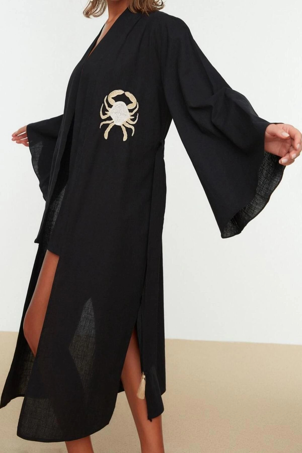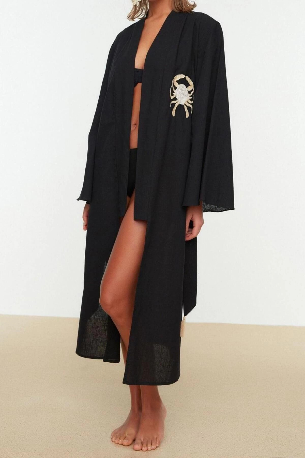 Moda Dokuma Rahat Kalıp Uzun V Yaka Standart Kol Flamlı Pamuk Basic Düz Desen Kimono Kaftan ürünümüz, hem şıklığı hem de rahatlığı bir arada sunar.