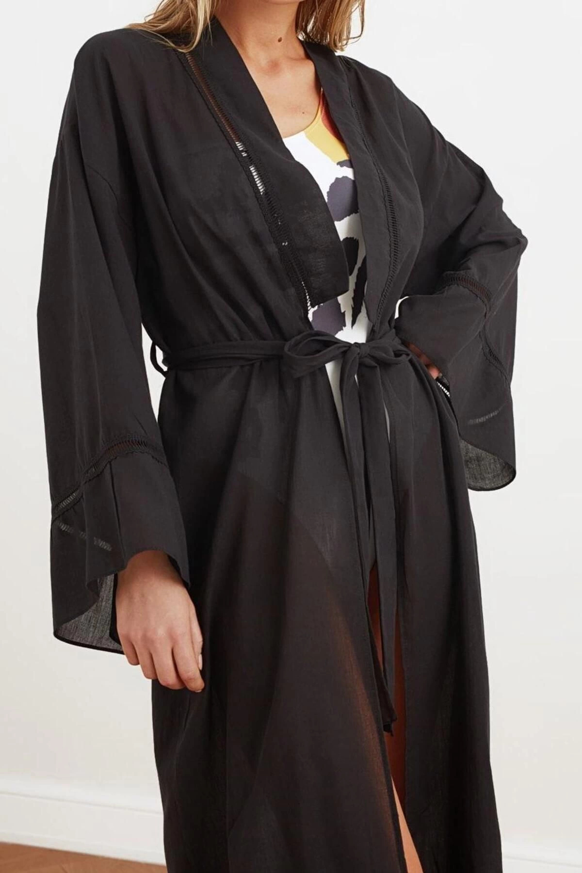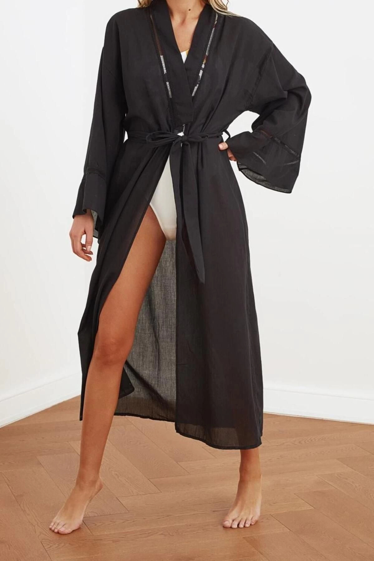 Moda Dokuma Regular Kalıp Uzun V Yaka İspanyol Kol Flamlı Pamuk Basic Düz Desen Kimono Kaftan ürünümüz, hem şıklığı hem de rahatlığı bir arada sunar.