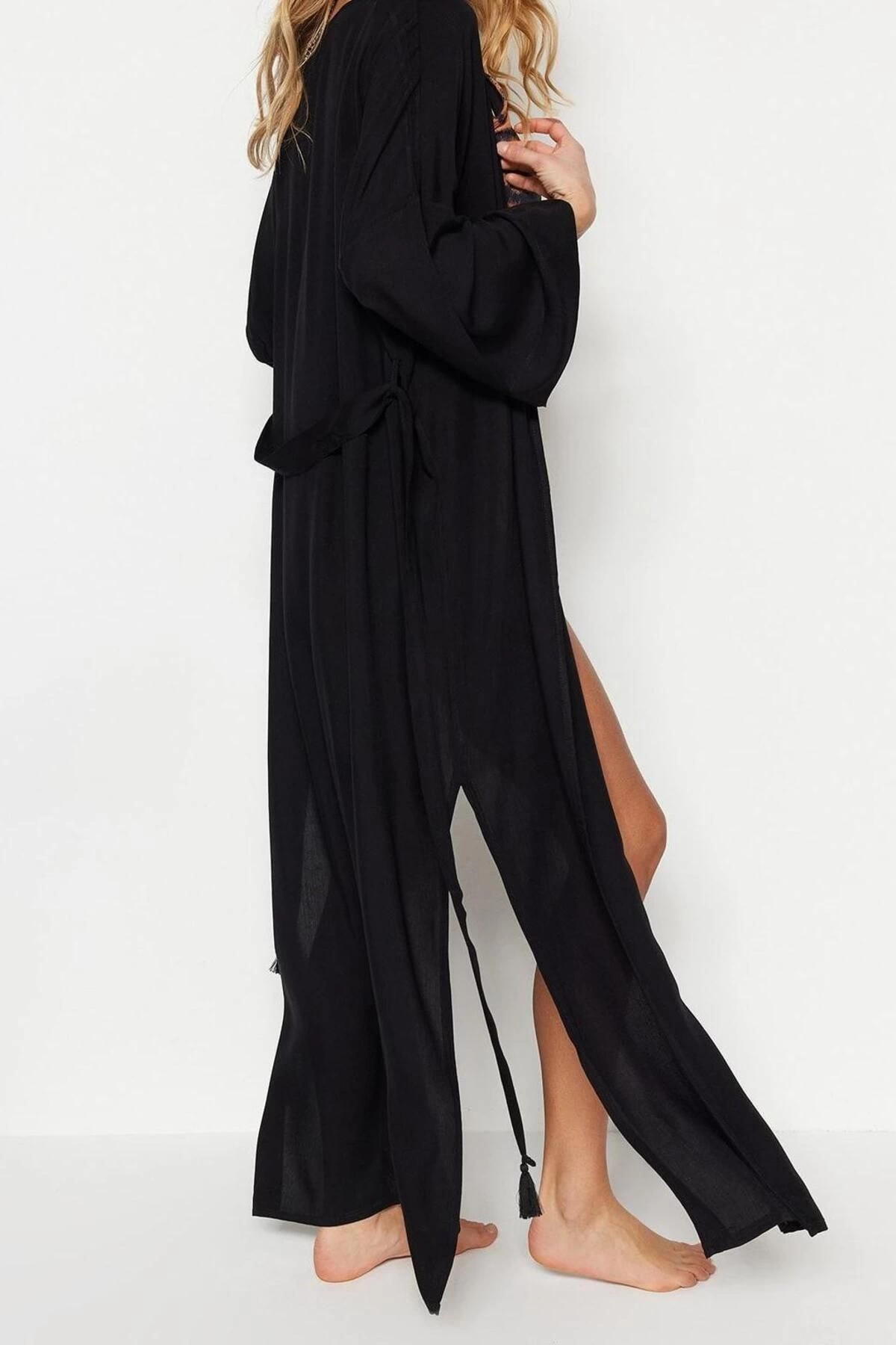 Moda Dokuma Regular Kalıp Uzun V Yaka Standart Kol Shally Panço Şal Desen Kimono Kaftan ürünümüz, hem şıklığı hem de rahatlığı bir arada sunar.