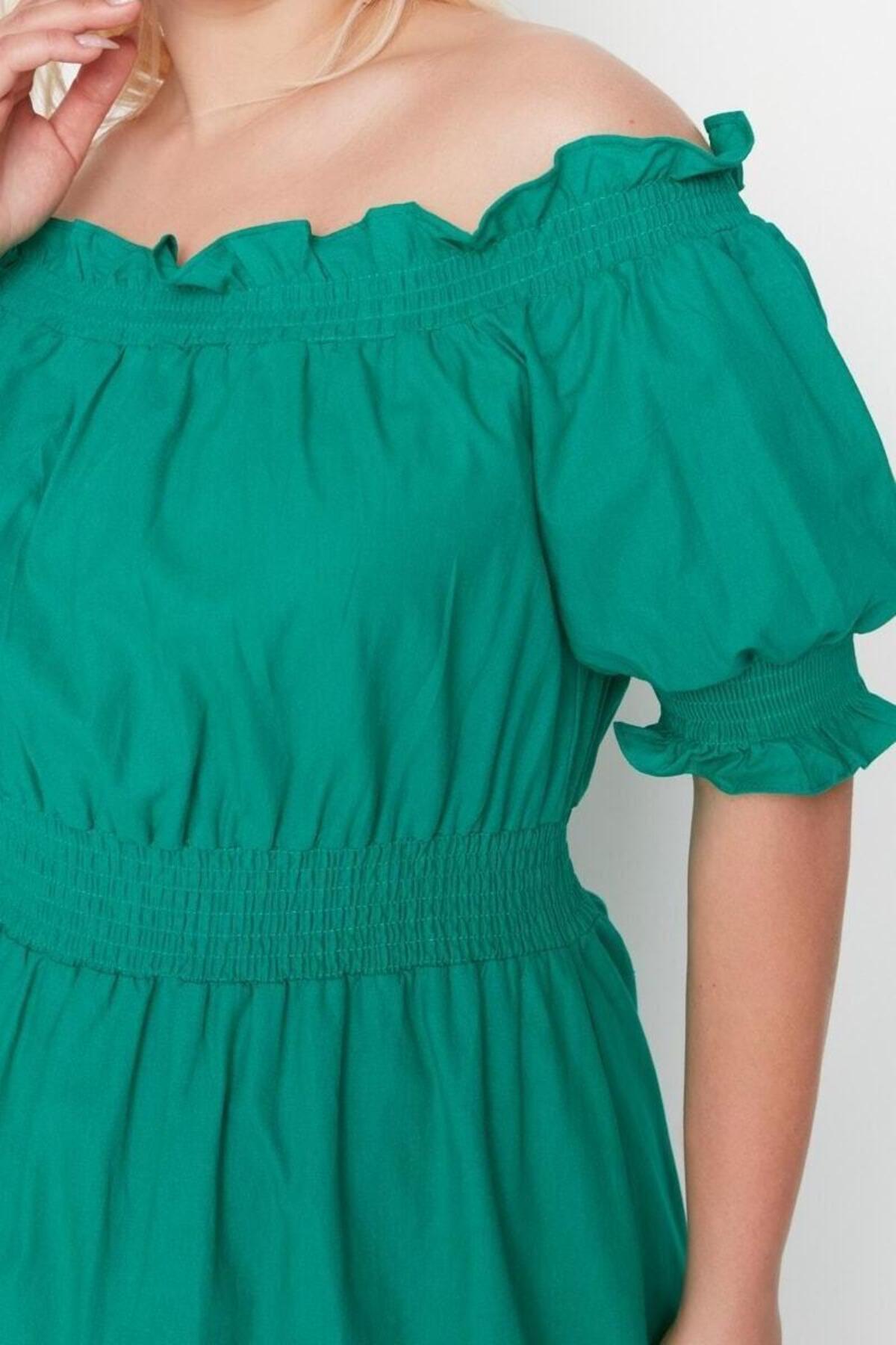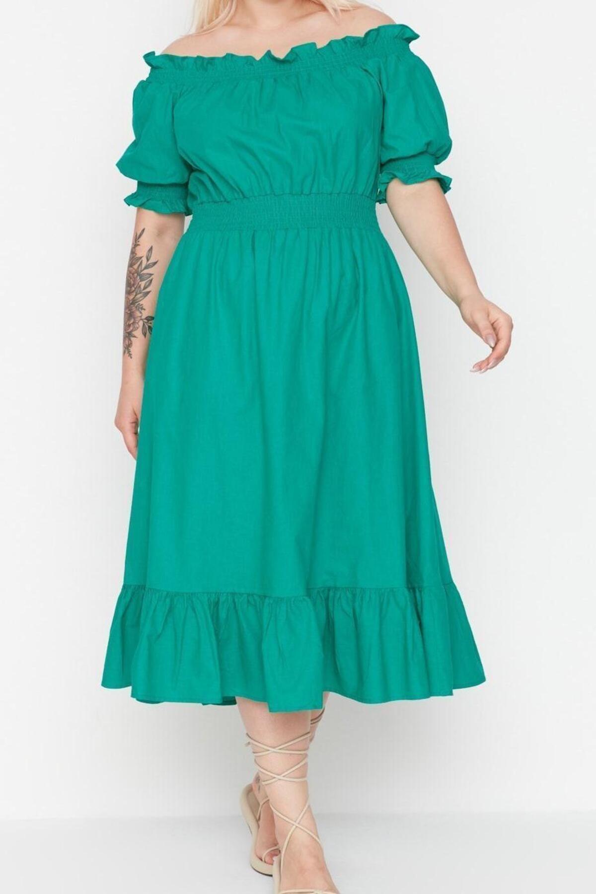 Moda Rahat Casual Günlük Shally Dokuma Carmen Yaka Kısa Kol A-Line Midi Boy Büyük Beden Elbise ile zahmetsiz stil keşfedin. ; casual/günlük için mükemmeldir, bu elbise, görünümünüze sofistike bir dokunuş katan klasik bir tasarıma sahiptir. ; Rahat kesimi, gün boyu şık ve rahat kalmanızı sağlar.| Bu elbise, rahatlık ve şık tasarımı bir araya getirerek gardırobunuzda çok yönlü bir parça haline getirir. ; İster işlerinizle uğraşın ister arkadaşlarınızla buluşun, bu elbise hem şık görünmenizi hem de rahat hissetmenizi sağlar. ; | Model Bilgisi: Modelin Ölçüleri: Boy: 175cm(59) Göğüs: 98cm(38in) Bel: 84cm(33in) Kalça: 116cm(45in). ; | Mankenin üzerindeki ürün 2XL4416 bedendir.. ; | Materyal Bileşeni: 58% Pamuk,42% Polyester. ; | Kumaş Tipi: Dokuma. ; | Model Ön Boyu: 120,0 cm. ; | Ürününüzü daha uzun süreli kullanabilmeniz ve ürününüze uygun bakım yapabilmeniz için lütfen aşağıda belirtilen yıkama talimatına uyunuz.. ; | Stüdyo çekimlerinde renkler ışık farklılığından dolayı değişiklik gösterebilir.. ; | | Materyal:Viskon | Kalıp:Relaxed | Kumaş Tipi:Dokuma | Kol Tipi:Balon Kol | Desen:Düz | Yaka Tipi:Carmen Yaka | Renk:Yeşil | Persona:Feminine | Kol Boyu:Kısa | Siluet:A-line | Ortam:Casual/Günlük | Boy:Midi | Dokuma Tipi:Shally | Astar Durumu:Astarsız | Cep:Cepsiz | Kemer/Kuşak Durumu:Yok | Sürdürülebilirlik Detayı:Hayır | Materyal Bileşeni:58% Pamuk, ,42% Polyester | Yıkama Talimatı:Type 0 | Koleksiyon:Büyük Beden | Paket İçeriği:Tekli | Yaş:Tüm Yaş Grupları |;
