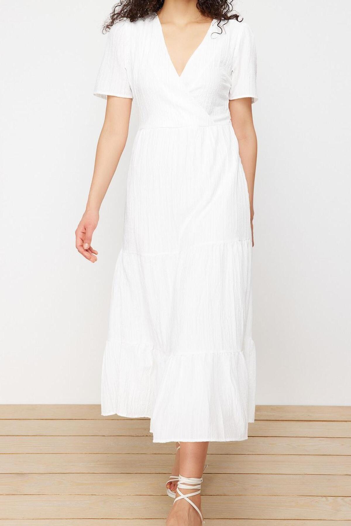 Moda Regular Casual Günlük Crinkle Dokuma Kruvaze Kısa Kol Skater Maxi Boy Elbise ile zahmetsiz stil keşfedin. ; casual/günlük için mükemmeldir, bu elbise, görünümünüze sofistike bir dokunuş katan klasik bir tasarıma sahiptir. ; Rahat kesimi, gün boyu şık ve rahat kalmanızı sağlar.| Bu elbise, rahatlık ve şık tasarımı bir araya getirerek gardırobunuzda çok yönlü bir parça haline getirir. ; İster işlerinizle uğraşın ister arkadaşlarınızla buluşun, bu elbise hem şık görünmenizi hem de rahat hissetmenizi sağlar. ; | Model Bilgisi: Modelin Ölçüleri: Boy: 173cm(58) Göğüs 84cm(33in) Bel: 60cm(23n) Kalça: 91cm(35in). ; | Mankenin üzerindeki ürün S368 bedendir.. ; | Materyal Bileşeni: 99% Polyester,1% Elastan. ; | Kumaş Tipi: Dokuma. ; | Model Ön Boyu: 130,0 cm. ; | Ürününüzü daha uzun süreli kullanabilmeniz ve ürününüze uygun bakım yapabilmeniz için lütfen aşağıda belirtilen yıkama talimatına uyunuz.. ; | Stüdyo çekimlerinde renkler ışık farklılığından dolayı değişiklik gösterebilir.. ; | | Kumaş Tipi:Dokuma | Materyal:Polyester | Kalıp:Regular | Kol Boyu:Kısa | Persona:Cool & Comfort | Kol Tipi:Standart Kol | Desen:Düz | Yaka Tipi:Kruvaze | Renk:Ekru | Ürün Detayı:Astarlı | Ürün Tipi:Düz | Astar Durumu:Astarlı | Boy:Maxi | Siluet:Skater | Ortam:Casual/Günlük | Dokuma Tipi:Crinkle | Sürdürülebilirlik Detayı:Hayır | Materyal Bileşeni:99% Polyester, ,1% Elastan | Yıkama Talimatı:T10 | Yaş:Tüm Yaş Grupları |;
