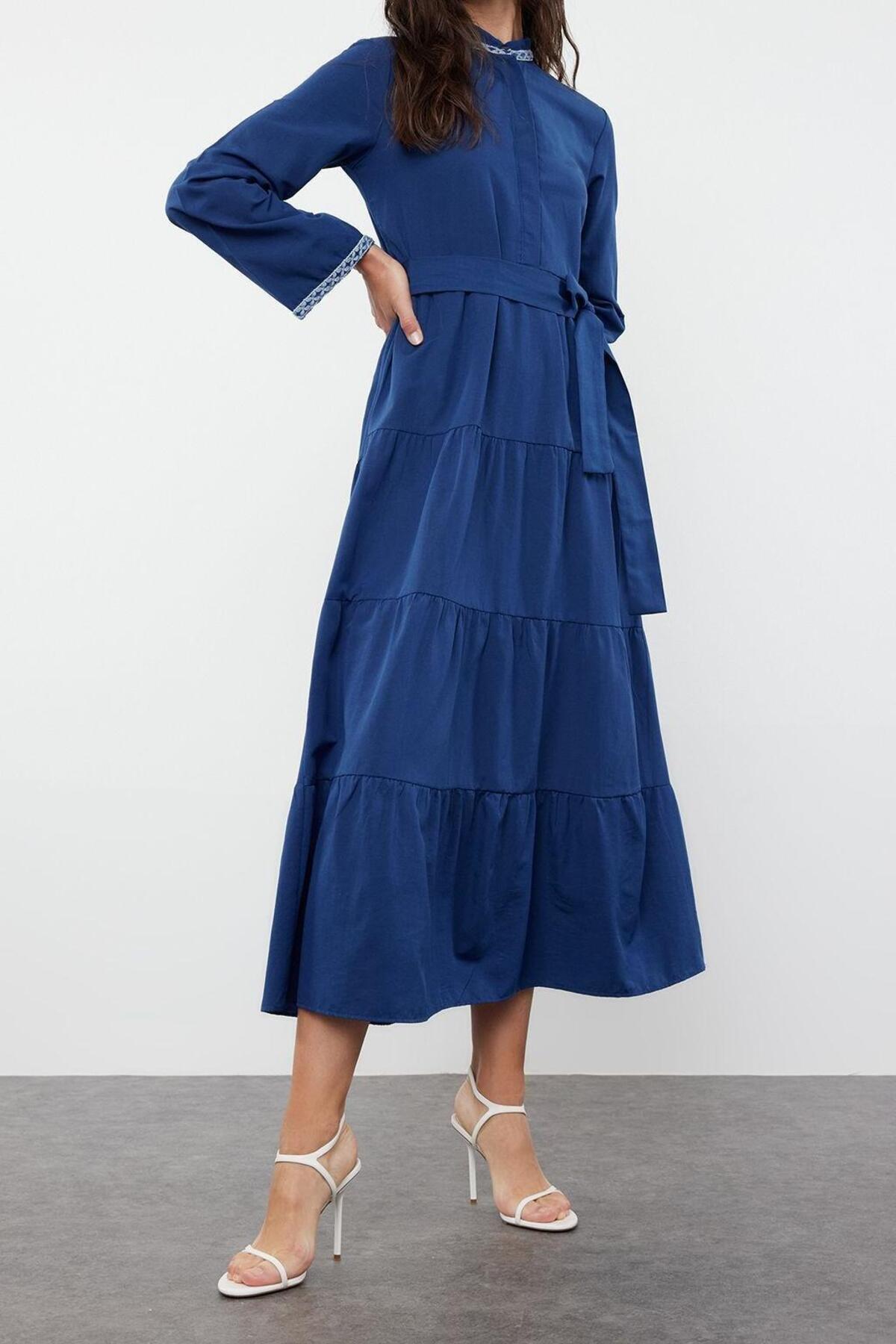 Moda Regular Casual Günlük Terrycotton Dokuma Hakim Yaka Uzun Kol A-Line Maxi Boy Tesettür Elbise ile zahmetsiz stil keşfedin. ; casual/günlük için mükemmeldir, bu elbise, görünümünüze sofistike bir dokunuş katan klasik bir tasarıma sahiptir. ; Rahat kesimi, gün boyu şık ve rahat kalmanızı sağlar.| Bu elbise, rahatlık ve şık tasarımı bir araya getirerek gardırobunuzda çok yönlü bir parça haline getirir. ; İster işlerinizle uğraşın ister arkadaşlarınızla buluşun, bu elbise hem şık görünmenizi hem de rahat hissetmenizi sağlar. ; | Model Bilgisi: Modelin Ölçüleri: Boy: 175cm(59) Göğüs: 81cm(31in) Bel: 60cm(23in) Kalça: 88cm(34in). ; | Mankenin üzerindeki ürün S368 bedendir.. ; | Materyal Bileşeni: 50% Polyester,50% Pamuk. ; | Kumaş Tipi: Dokuma. ; | Model Ön Boyu: 135,0 cm. ; | Astarsızdır, astarla giymeniz önerilir.. ; | Ürününüzü daha uzun süreli kullanabilmeniz ve ürününüze uygun bakım yapabilmeniz için lütfen aşağıda belirtilen yıkama talimatına uyunuz.. ; | Stüdyo çekimlerinde renkler ışık farklılığından dolayı değişiklik gösterebilir.. ; | | Kalıp:Regular | Kumaş Tipi:Dokuma | Desen:Düz | Yaka Tipi:Hakim Yaka | Kol Tipi:Standart Kol | Renk:Mavi | Kol Boyu:Uzun | Astar Durumu:Astarsız | Ürün Detayı:Brode | Koleksiyon:Tesettür Giyim | Ortam:Casual/Günlük | Siluet:A-line | Boy:Maxi | Materyal Bileşeni:50% Polyester, ,50% Pamuk | Dokuma Tipi:Terrycotton | Persona:Cool & Comfort | Yıkama Talimatı:T10 | Sürdürülebilirlik Detayı:Hayır | Yaş:Tüm Yaş Grupları |;