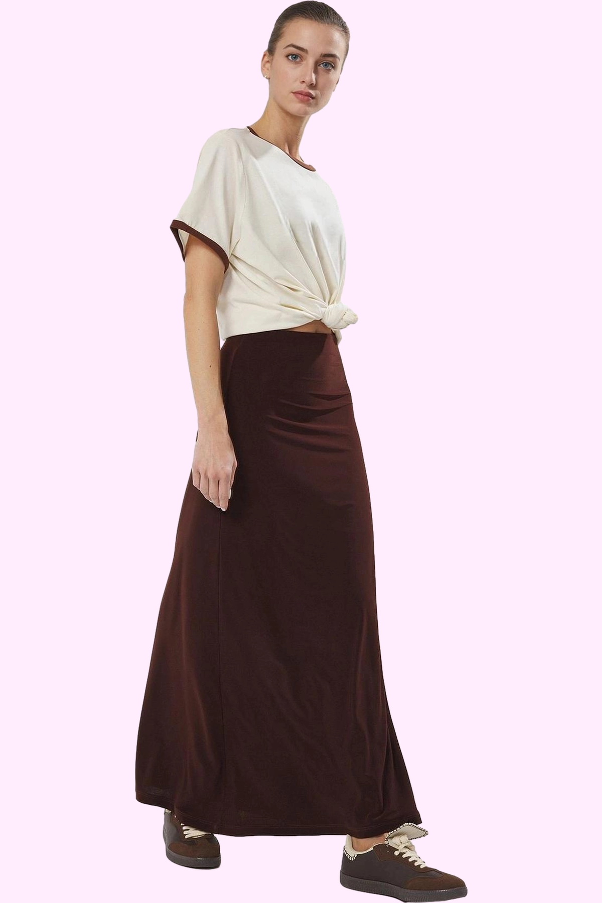 Moda Regular Düz Desen Günlük Maxi Boy Vücuda Oturan Balık Form Esnek Maxi Etek ürünümüz, hem şıklığı hem de rahatlığı bir arada sunar.Bu Etek ile zahmetsiz stil keşfedin.Günlük ve özel günleriniz de kullanım için ideal olan bu ürün, kaliteli materyali ve modern tasarımıyla ön plana çıkar. ; Yeni sezonun trendlerini yakından takip edenler için mükemmel bir seçim. ; | Model Bilgisi: Modelin Ölçüleri: Boy: 179cm(510) Göğüs: 85cm(33in) Bel: 60cm(23in) Kalça: 90cm(35in). ; | Mankenin üzerindeki ürün S368 bedendir.. ; | Materyal Bileşeni: 96% Polyester,4% Elastan. ; | Kumaş Tipi: Örme. ; | Kemer dahil yan boy ölçüsü: 100,0 cm. ; | Ürününüzü daha uzun süreli kullanabilmeniz ve ürününüze uygun bakım yapabilmeniz için lütfen aşağıda belirtilen yıkama talimatına uyunuz.. ; | Stüdyo çekimlerinde renkler ışık farklılığından dolayı değişiklik gösterebilir.. ; | | Desen:Düz | Bel:Yüksek Bel | Kumaş Tipi:Örme | Renk:Kahverengi | Ürün Tipi:Düz | Ürün Detayı:Kemerli | Boy:Maxi | Siluet:Kalem | Ortam:Casual/Günlük | Dokuma Tipi:Sandy | Persona:Cool & Comfort | Sürdürülebilirlik Detayı:Hayır | Materyal Bileşeni:96% Polyester, ,4% Elastan | Yıkama Talimatı:T10 | Paket İçeriği:Tekli | Yaş:Tüm Yaş Grupları |;