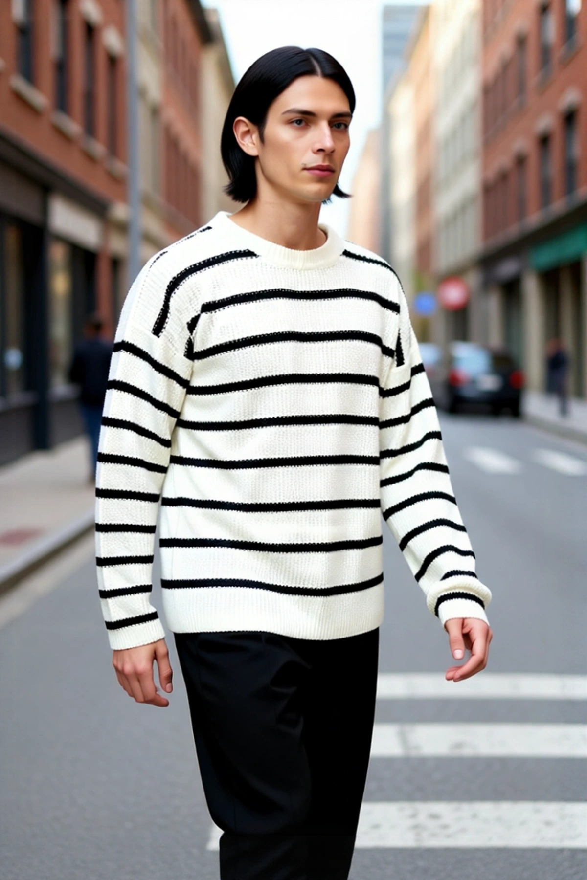 Modern erkeğin tarzını yansıtan bu gri çizgili kazak, oversize kalıbıyla hem rahat hem de trend bir siluet sunar. %100 akrilik materyali sayesinde kış aylarının vazgeçilmezi olurken, soğuk havaya karşı üstün koruma sağlar ve yumuşak dokusuyla gün boyu konforlu bir kullanım deneyimi yaşatır. Çizgili deseni, kazağa dinamik bir hava katarken, gri rengi her türlü kombinle kolayca uyum sağlar. Baskısız ve sade tasarımı, minimalist bir şıklık arayanlar için ideal bir seçimdir.