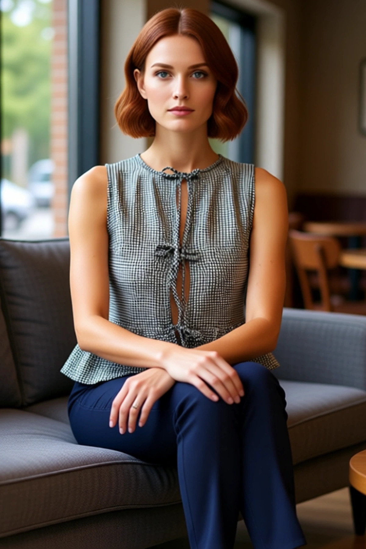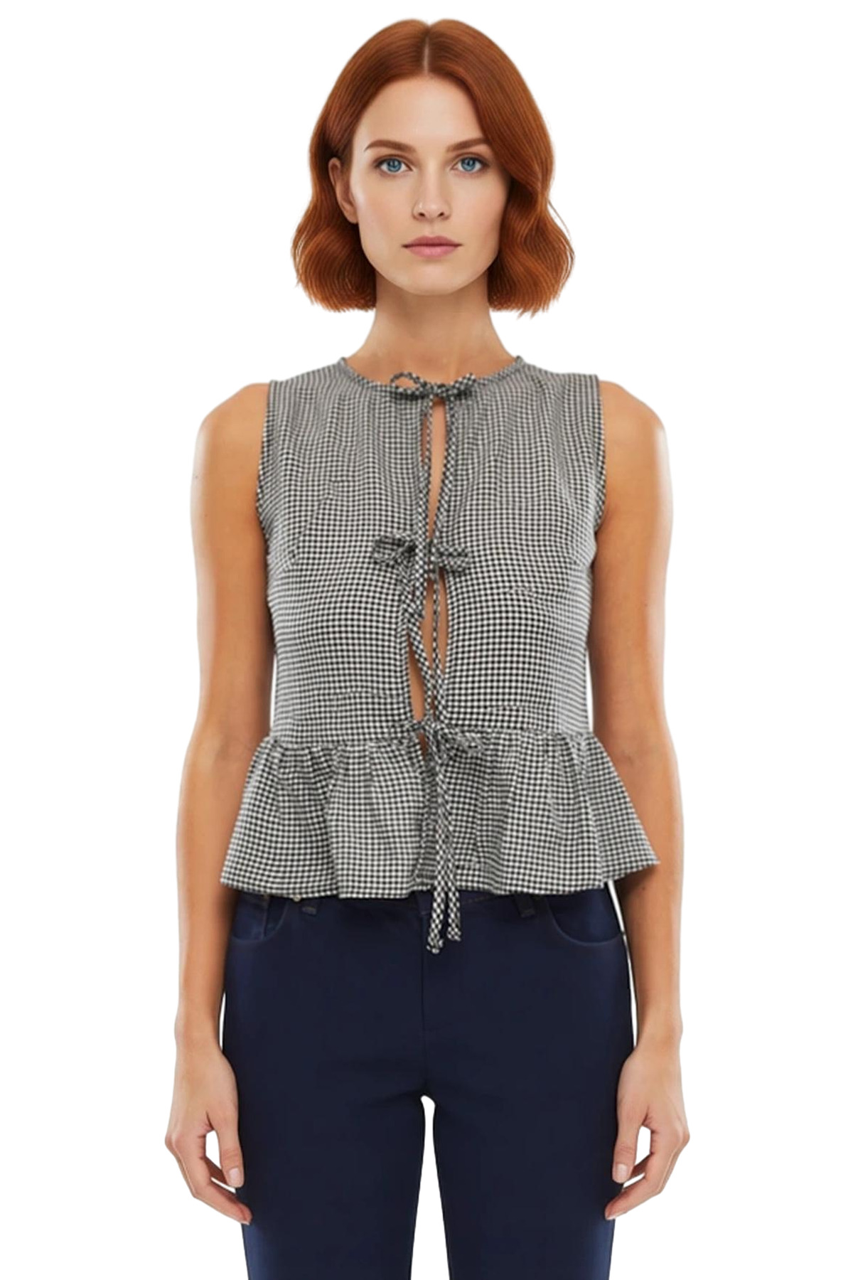 Sıcak yaz günlerinde hem şık hem de rahat olmak mı istiyorsunuz? O zaman bu siyah ekose bluz tam size göre! Nefes alan dokuma kumaştan üretilen bluz, gün boyu konfor sağlar. Bisiklet yakası ve kolsuz tasarımıyla yaz sıcağında serin kalmanıza yardımcı olur. Regular kalıbıyla her vücut tipine uyum sağlar. Önündeki bağlama detayı ise bluza feminen bir hava katar. Ekose deseninin şıklığı her kombininizi tamamlayacak, kaliteli malzemesi ise uzun süreli kullanım sunuyor.