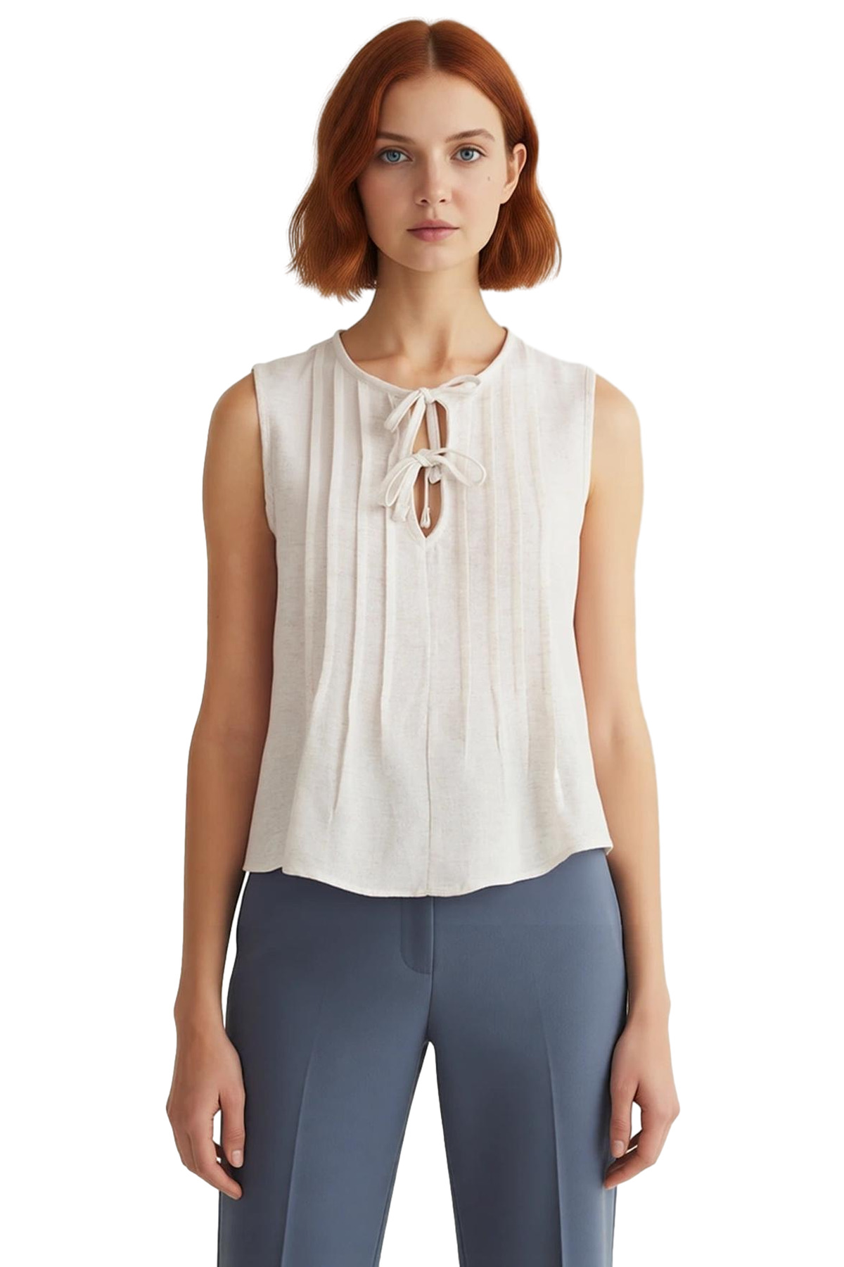 Günlük stilinize şıklık ve rahatlık katacak bu bej bluz, yaz aylarında ideal bir tercih. Keten karışımlı dokusuyla nefes alabilir ve yumuşak bir his sunar. Bisiklet yakası, kolsuz tasarımı ve regular kalıbıyla her vücut tipine uyum sağlar. Düz deseni ve keten görünümlü dokuma yapısıyla şıklığı ve zarafeti bir arada sunarken, 69% viskoz ve 31% keten bileşimiyle de dayanıklılığı garanti altına alır. Makinede yıkama kolaylığıyla pratik bir kullanım sağlar. Bu bluzu şort, pantolon veya eteklerle kombinleyerek, hem günlük hem de özel günlerde göz alıcı bir görünüm yaratabilirsiniz. Yaz aylarında serin ve rahat kalmak isteyenler için mükemmel bir seçenek. Şıklığı ve konforu bir arada arayanlar için ideal bir tercih!