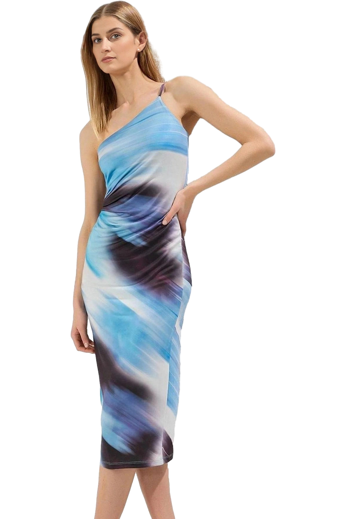 Rahatlığı ve şıklığı bir araya getiren bu elbise, yüksek kaliteli malzemeleri ve kusursuz dikişleriyle uzun süreli kullanım ömrü sunar. Vücuda tam oturan kalıbı, formunuzu ön plana çıkarırken, ince askıları ve asimetrik yakasıyla feminen bir hava katıyor. Cepsiz tasarımı, minimalist bir tarz yaratırken, baskısız yapısı, farklı aksesuarlarla kombinleyerek tarzınızı kişiselleştirmenize olanak tanıyor. Gündüz ve gece kullanımına uygun olan bu elbise, her ortamda şık ve göz alıcı görünmenizi sağlayacak.