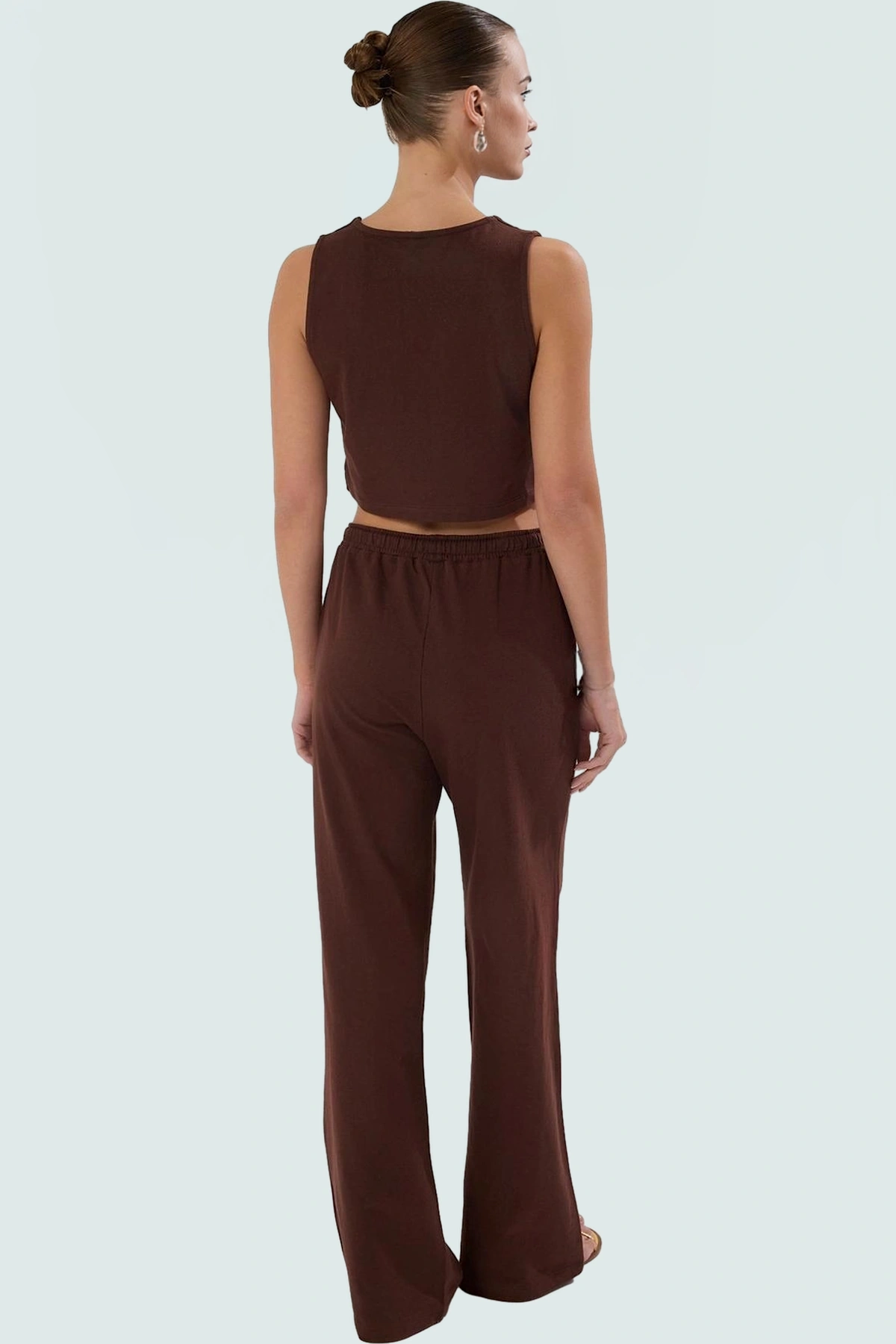 Yaz aylarının vazgeçilmezi, nefes alan pamuklu kumaştan üretilen bu şık takım elbise ile tanışın! 87% pamuk, 9% polyester ve 4% viskoz karışımıyla üretilen kumaşı, gün boyu rahat ve ferah hissetmenizi sağlar. Geniş paça pantolon ve V yaka yelekli tasarımı ile modern ve şık bir görünüm sunar. Düz ve kahverengi rengi ile her zevke hitap eder. Bu rahat ve şık takım elbise, günlük kullanım için idealdir.