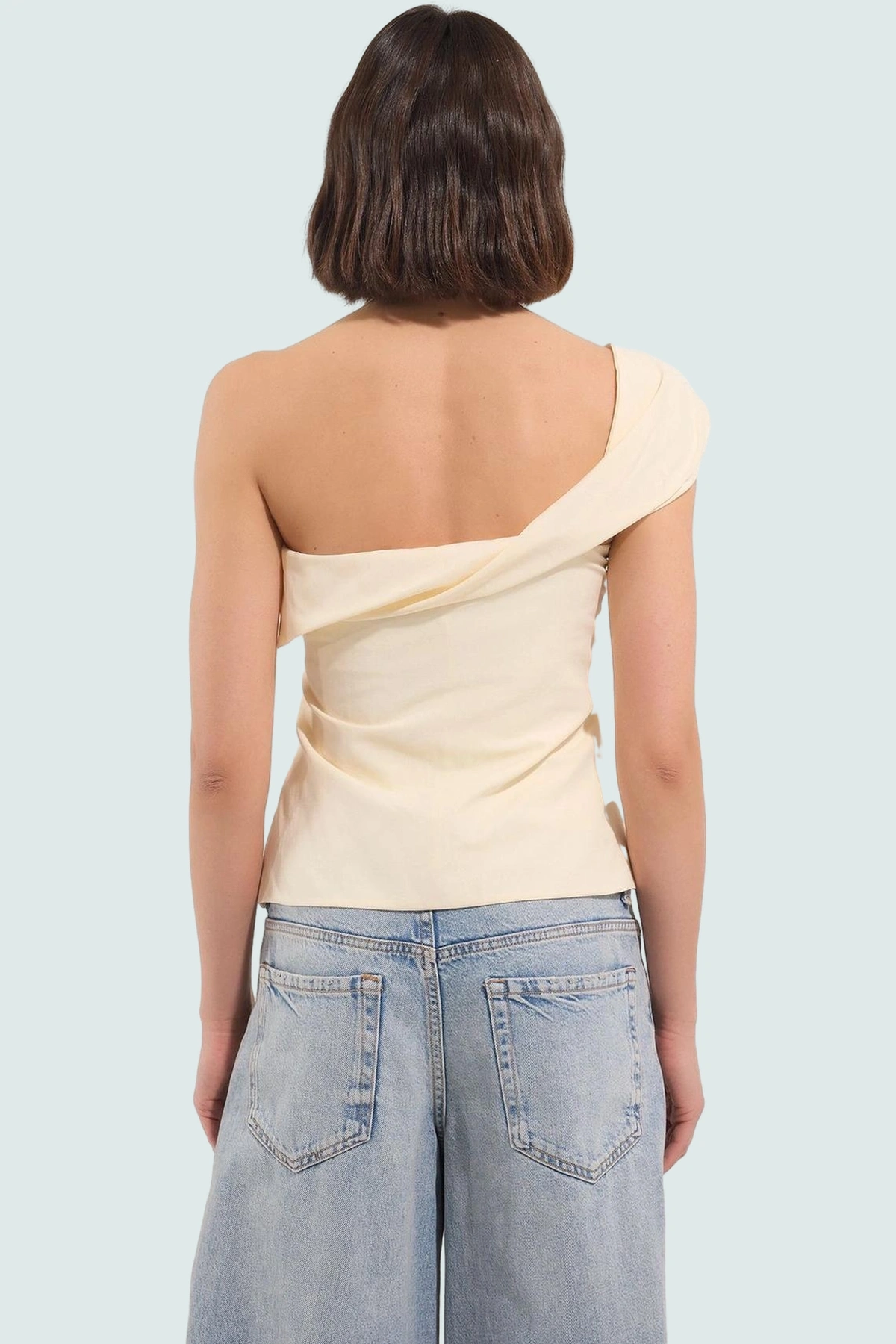 Sıcak yaz günlerinde hem şık hem de rahat hissetmek mi istiyorsunuz? O zaman bu tek omuzlu bluzumuz tam size göre! %50 pamuk, %50 polyester karışımı Terrycotton kumaşı, nefes alabilir yapısıyla gün boyu serin ve konforlu kalmanızı sağlar. Carmen yakası ve tek omuz tasarımıyla feminen ve modern bir tarz yakalayabilirsiniz. Regular kalıbı vücudunuza mükemmel otururken, kolsuz tasarımı sayesinde hareket özgürlüğünüzü kısıtlamaz.