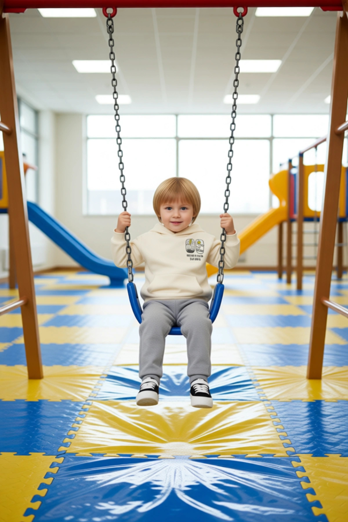 Çocuklarınızın kış aylarında hem sıcak hem de stil sahibi olmasını sağlayacak bu özel alt-üst takım, örme kumaşı ve şardonlu iç yüzeyi ile maksimum konfor sunar. Üst parça, rahat bir kapüşonlu sweatshirt’tür ve oversize kalıbı sayesinde çocuğunuzun hareketlerini kısıtlamaz. Önündeki geniş kanguru cep, küçük eşyalarını saklamak veya ellerini ısıtmak için idealdir. Sweatshirt’ün üzerinde bulunan dikkat çekici slogan baskısı, takıma genç ve dinamik bir hava katar. Alt parça ise, sweatshirt ile mükemmel uyum sağlayan, rahat kesimli bir eşofman altıdır. Ayarlanabilir büzgü ipli ve lastikli bel kısmı, her bedene uyum sağlayarak maksimum konfor sunar. Bu takım, özellikle günlük kullanım için tasarlanmıştır; okul hayatından oyun zamanlarına kadar her an çocuğunuzun yanında olacaktır. Pamuk ve polyesterin dengeli karışımı, kumaşa hem yumuşaklık hem de dayanıklılık kazandırır. Kolay bakım imkanı sunan bu ürün, makinede yıkanabilir özelliktedir. Kaliteli dikişleri ve işçiliği sayesinde uzun yıllar boyunca ilk günkü gibi kalacaktır. Bu takım, çocuğunuzun soğuk havalarda bile enerjik ve aktif kalmasına yardımcı olurken, stilini de tamamlayacaktır. Katmanlı giyim için de uygun olan bu ürün, farklı hava koşullarında kullanıma olanak tanır. Çocuğunuzun gardırobuna ekleyeceğiniz bu takım, onun favorisi olmaya adaydır. Kalite, konfor ve şıklığı bir arada sunan bu ürün, ebeveynlerin güvenle tercih edebileceği bir seçenektir. Bu alt-üst takım, çocuğunuzun kış maceralarında ona eşlik edecek.