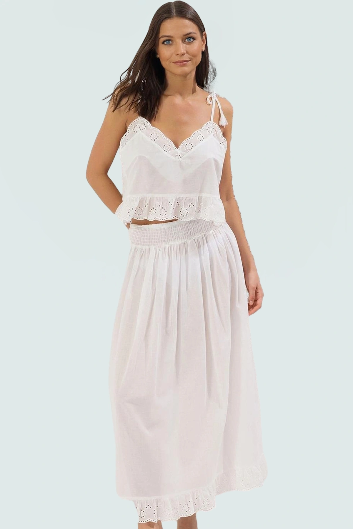 Yazın sıcak günlerinde hem şık hem de rahat hissetmek isteyenler için ideal bir seçim olan 100 Pamuk Ekru Bluz Etek Takım, plaj stilinizi tamamlayacak. Vual dokuma kumaşın hafif ve nefes alabilen yapısıyla gün boyu konforlu bir deneyim yaşayacaksınız. Ekru rengi ve düz deseniyle sadeliği ve şıklığı bir araya getiren bu takım, her vücut tipine uyum sağlayacak şekilde tasarlandı. Reglan kol detayı ile hareket özgürlüğü sunarken, uzun boy etek ile şık bir görünüm elde edebilirsiniz.