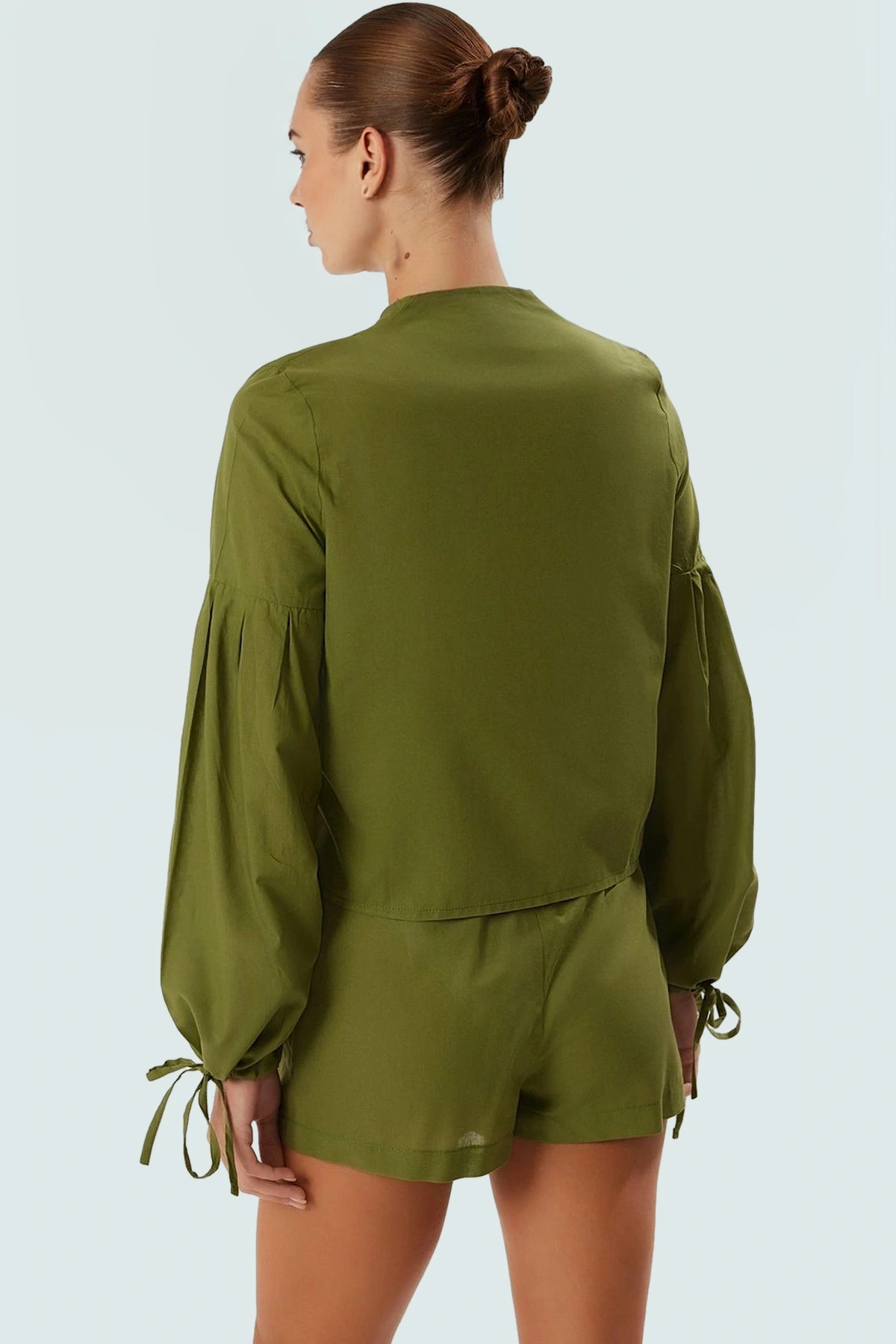 Yumuşak ve kaliteli pamuk kumaşı ile teninizde ipeksi bir his bırakacak olan takım, dayanıklı yapısı sayesinde uzun yıllar kullanabileceğiniz bir yatırımdır. Bluzun bağcıklı manşetleri ve şortun elastik beli, ekstra konfor sağlar. Modelin üzerindeki ürün S beden olup, modelin ölçüleri: boy 177 cm, göğüS-83 cm, beL-63 cm, kalça 92 cm’dir. Bu bilgiler, kendi bedeninizi belirlemenize yardımcı olacaktır.