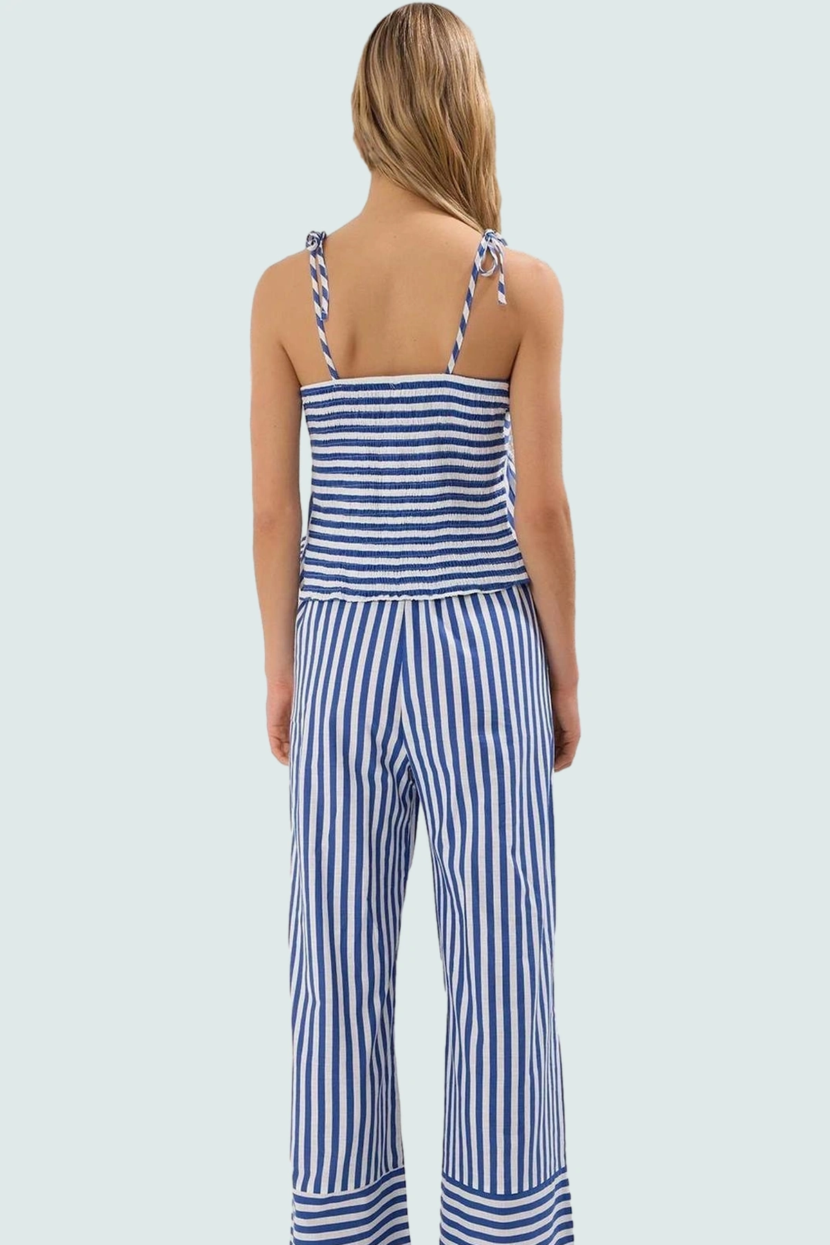 Yazın keyfini çıkarırken şık ve rahat hissetmek mi istiyorsunuz? O zaman, 100% pamuktan üretilen, çizgili plaj takımımız tam size göre! Nefes alan kumaş yapısı ve rahat fitted kalıbıyla gün boyu konfor sunar. Şık çizgili tasarımı, plajda ya da şehirde her yerde göz alıcı bir görünüm sağlar. Kalın askılı üst ve uzun pantolonuyla, hem şık hem de pratik bir seçenektir. Bu takım, sıcak yaz günlerinde serin kalmanıza yardımcı olurken, tarzınızdan da ödün vermenizi engeller.