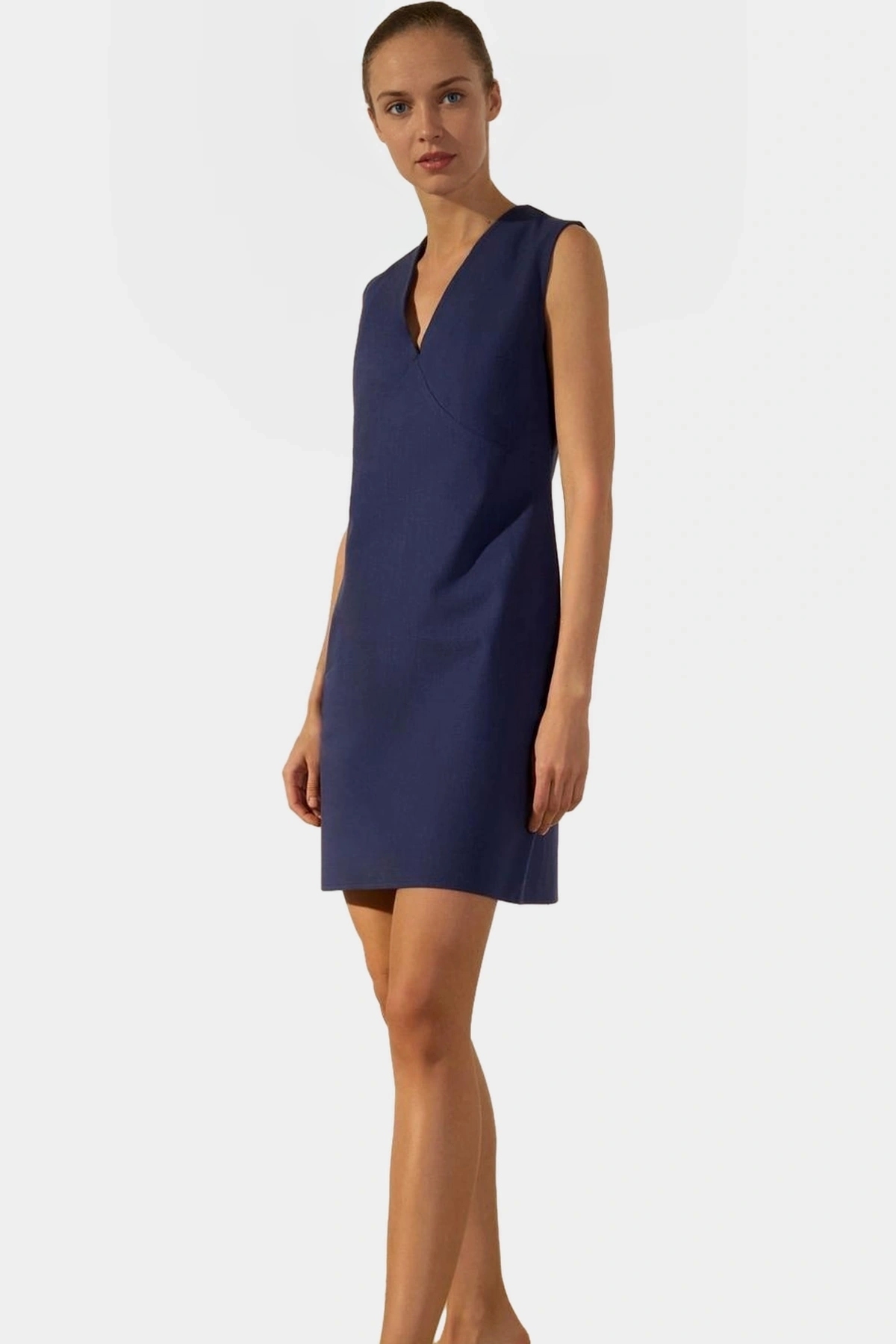 Şıklığı ve rahatlığı bir araya getiren lacivert pamuk keten mini elbisemiz, yaz aylarının vazgeçilmezi olacak! Nefes alan yapısı ve A kesim tasarımıyla gün boyu konfor sunarken, zarif V yakası ve kolsuz modeliyle de şıklığınızı tamamlar. Dokuma kumaşı ile hem şık hem de dayanıklıdır, uzun süre kullanım sağlar. Özellikle sıcak günler için ideal olan bu elbise, günlük kombinlerinizde rahatlıkla tercih edebileceğiniz bir parça.