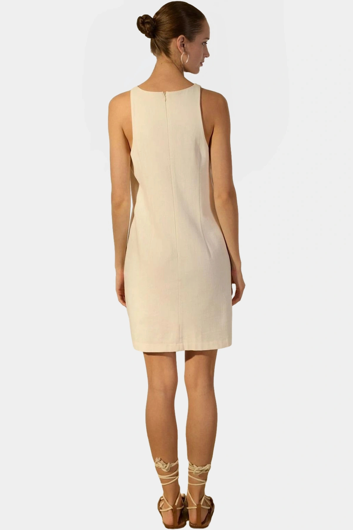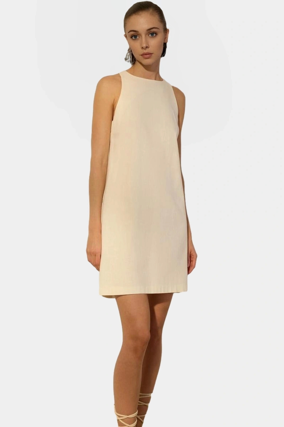 Pamuk Keten Mini Elbise Kolsuz Shift Kalıp Yazlık Mükemmel Uyum Günlük Kullanım İçin