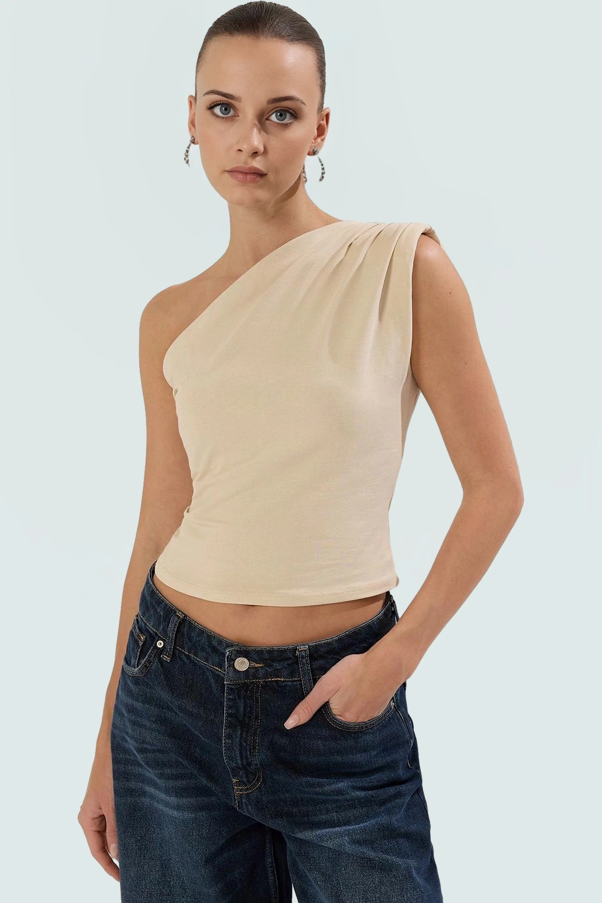 Pamuklu Asimetrik Tek Omuz Bluz Rahat Esnek Yazlık Profesyonel Görünüm Özenle Seçilmiş