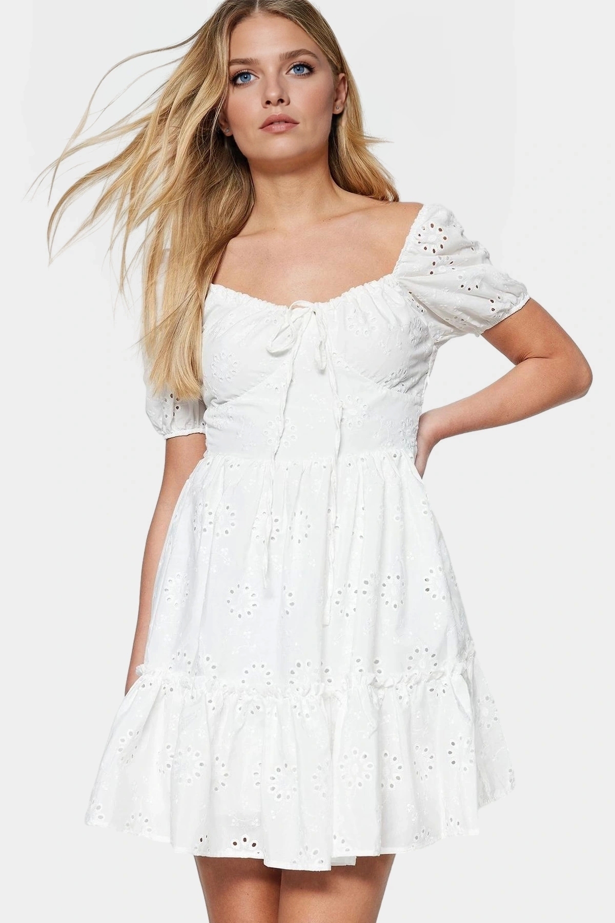 Elbisenin pamuklu kumaşı nefes alabilir ve yumuşaktır, böylece yaz sıcağında bile rahat hissetmenizi sağlar. Skater kesim, vücut hatlarınızı güzel bir şekilde tamamlarken, mini boy ve belden açılan etek hareket özgürlüğü sunar. Brode işlemeleri de elbiseye zarif bir dokunuş katar. Astarlı olması ise ekstra bir konfor sağlar. Bu elbiseyi, farklı aksesuarlarla kombinleyerek dilediğiniz gibi şekillendirebilirsiniz. Günlük kullanım için mükemmel olan bu elbiseyle şıklığınıza şıklık katabilirsiniz.