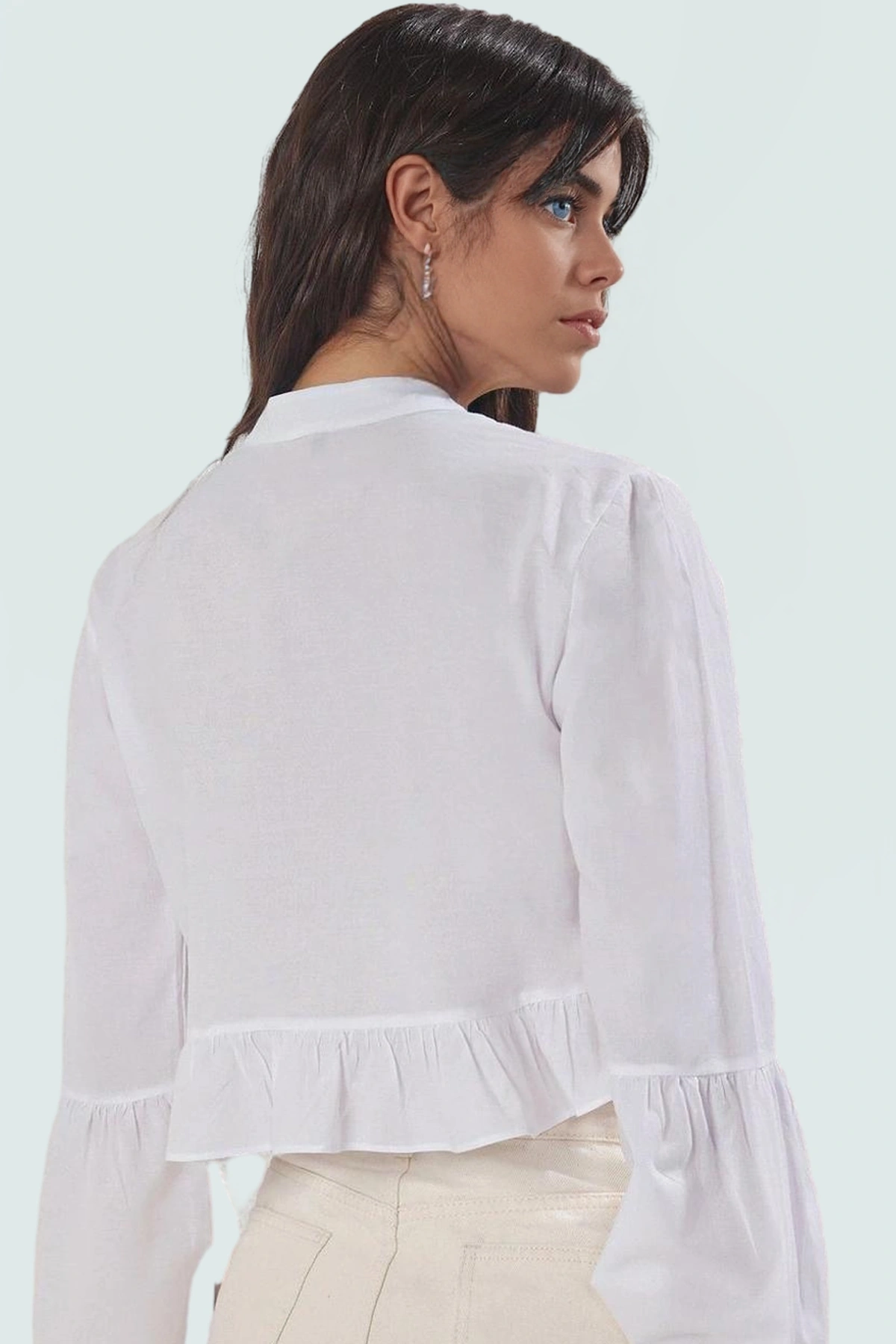Bu muhteşem ekru renkli plaj bluzuyla yazın tadını çıkarın! %100 pamuktan üretilen bu ince, nefes alabilen kumaş, gün boyu konfor sunarken, şık dantelli detayı ve bağlamalı ön kısmı ile göz alıcı bir stil yaratır. Slim fit kalıbı vücudunuzu sarar ve feminen bir görünüm sağlar. Uzun kolları sayesinde güneşten korunurken, rahatlığı da hissedeceksiniz. Yazlık kıyafetlerinize mükemmel bir tamamlayıcı olacak bu bluz, plaj, havuz kenarı veya akşam yürüyüşleri için idealdir.