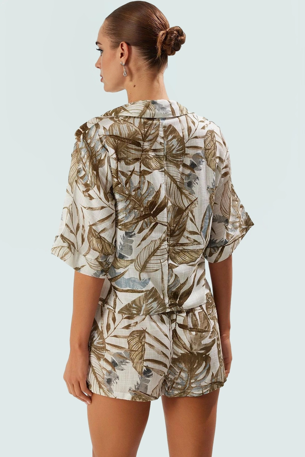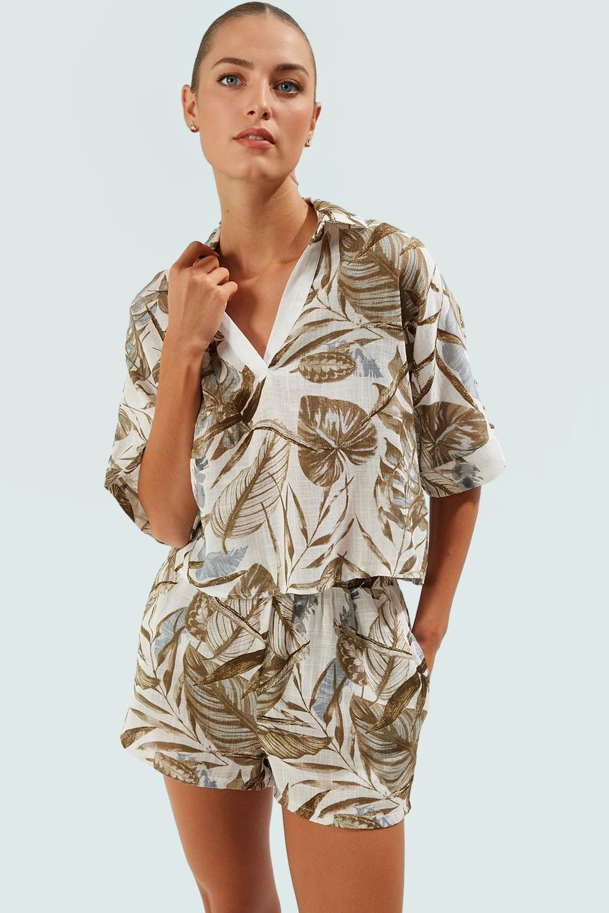 Sıcak yaz günlerinde hem şık hem de rahat olmak mı istiyorsunuz? O zaman bu çiçekli pamuklu bluz pantolon takımına bayılacaksınız! %100 pamuk dokuma kumaştan üretilen takım, nefes alabilir yapısıyla gün boyu konfor sunuyor. Reglan kolları ve oversize kalıbıyla hareket özgürlüğü sağlarken, canlı çiçek deseni ve çok renkli tasarımıyla stilinizi yansıtıyor. Dik yakasıyla şık bir görünüm sunan bluz, plajda, havuz başında veya günlük hayatta rahatlıkla kullanabileceğiniz uzun boylu pantolonu ile mükemmel bir uyum sağlıyor. Plaj çantanızla ve şapkanızla tamamlayarak yazın enerjisini üzerinizde taşıyabilirsiniz.