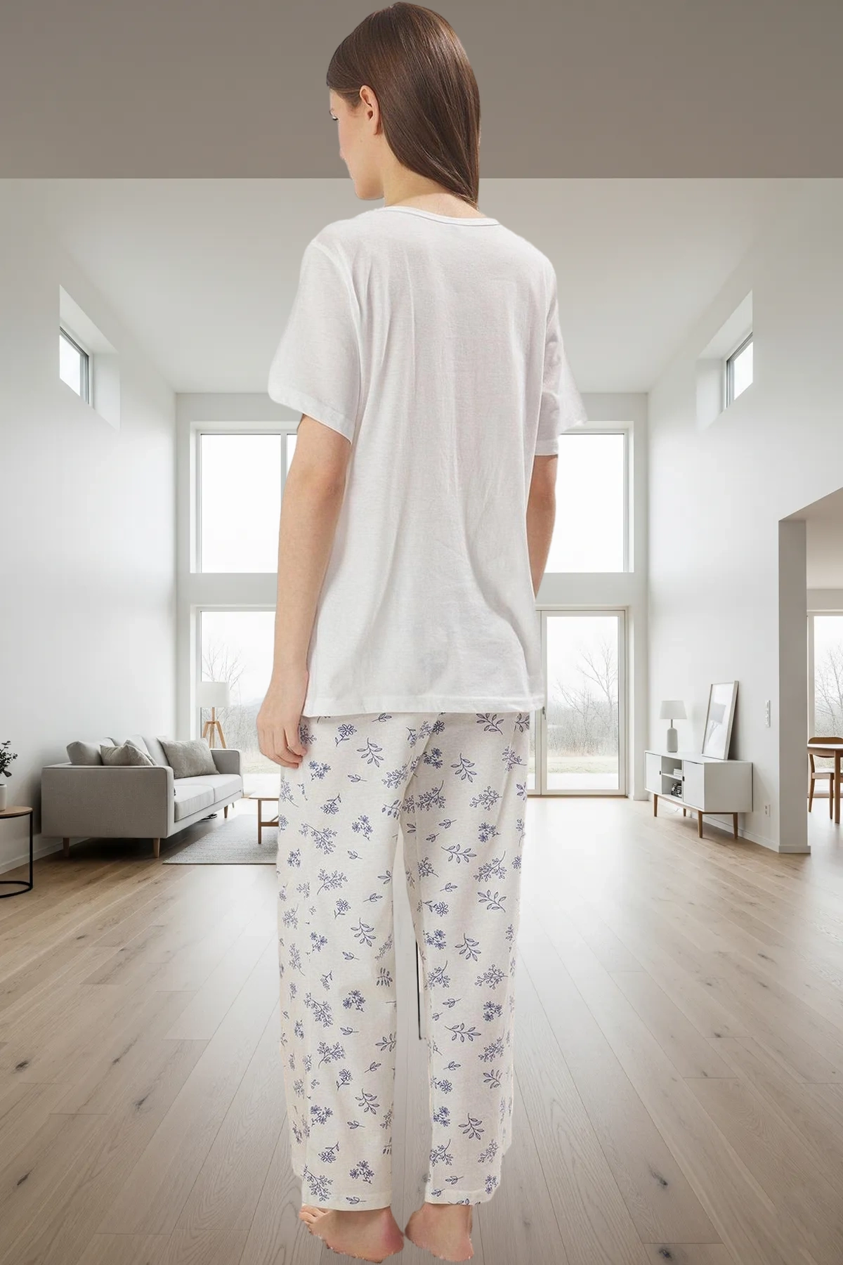 Bu 2’li pijama takımı, bir tişört ve kapri pantolon içerir. %100 pamuk malzemesi, hassas cildiniz için mükemmel bir seçimdir. 30/1 openend süprem dokuma tipi, dayanıklılığı ve uzun ömürlülüğü garanti eder. Tüm gün boyunca konforlu bir kullanım sağlar. Çiçek desen, sade ve şık bir görünüm yaratır. Regular kalıp, hamilelik dönemindeki vücut değişimlerine uyum sağlayacak şekilde tasarlanmıştır. Lounge ve Home ortamlarında rahatça kullanılabilir.