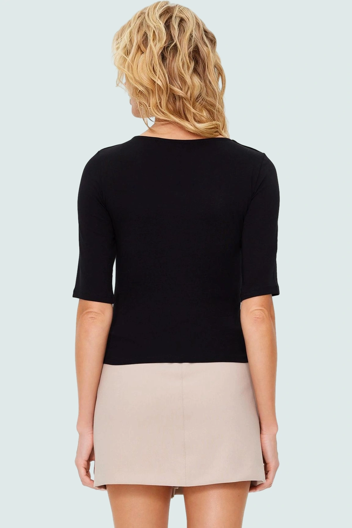 Şıklığı ve rahatlığı bir araya getiren bu siyah bluz, günlük stilinize modern bir dokunuş katacak. Yüksek kaliteli pamuklu likralı penye kumaştan üretilen bluz, yumuşak dokusu ve nefes alabilir özelliği ile yaz aylarında sizi serin tutacak. Fitted kalıbı vücut hatlarınızı zarifçe sararken, kısa kolları ve kayık yakasıyla şık ve modern bir görünüm sunar. Cepsiz tasarımı minimal bir stil oluştururken, astarsız yapısı ise gün boyu konfor sağlar. Her mevsim gardırobunuzda olması gereken temel parçalardan biridir.