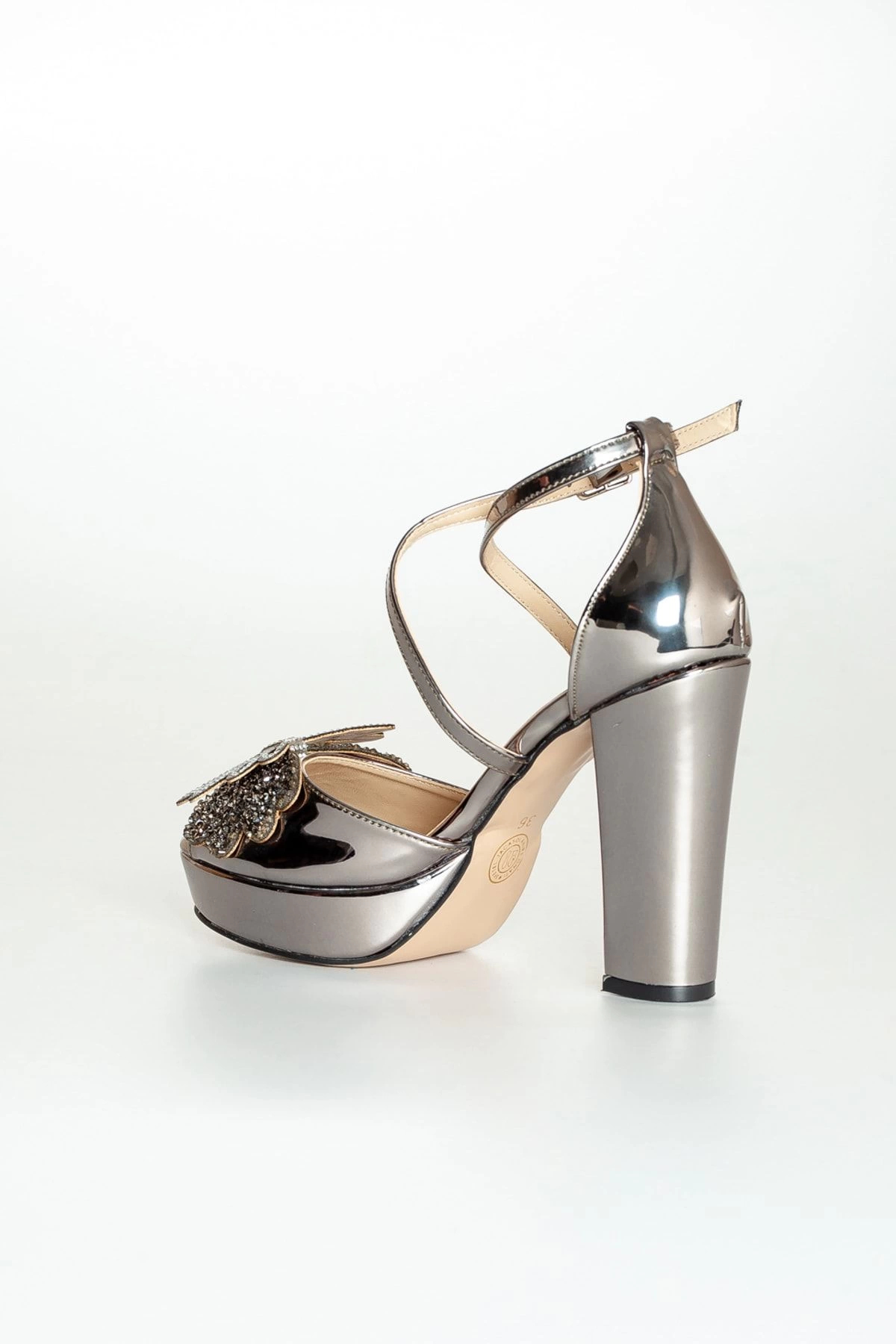Platin Ayna Taşlı Kadın Abiye Ayakkabı Kadın Topuklu Şık Gece Ayakkabısı Zarif Tasarım