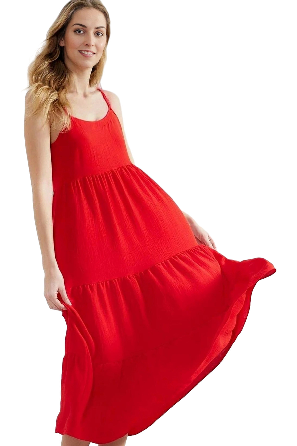 Bu çok yönlü elbiseyi, düz sandaletlerle plaj kombininizde, şık bir çanta ve topuklu ayakkabı ile de akşam davetlerinde rahatlıkla kullanabilirsiniz. Sade tasarımı ile her tarza uyum sağlarken, rahatlığı ile günlük kullanım için de ideal bir seçim. Her mevsime uygun olmayan bu elbise, yaz aylarının sıcak günlerinde tarzınızı yansıtmanıza yardımcı olacaktır.