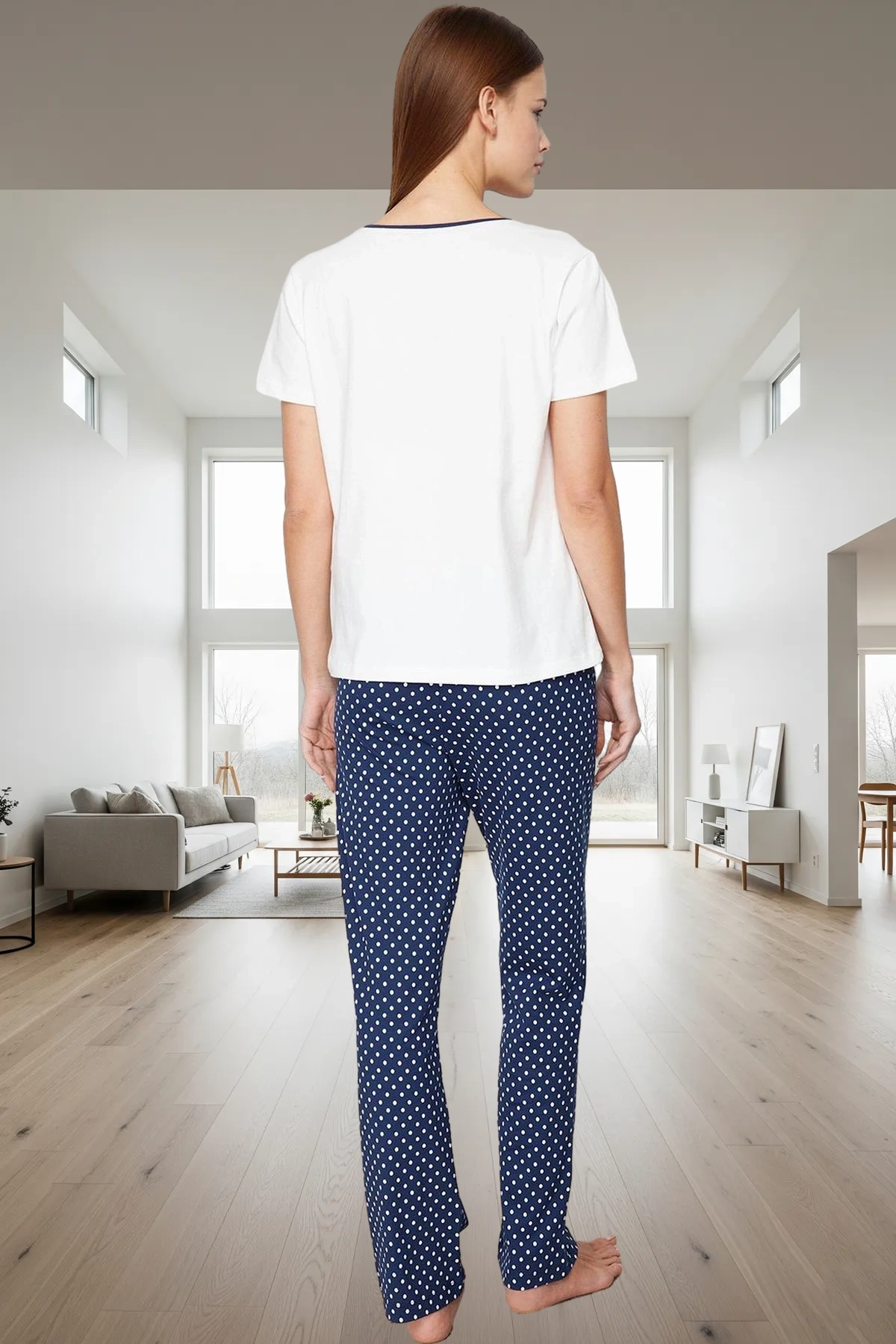 Evde rahatlığı ve şıklığı bir arada sunan bu 2’li pijama takımı, yumuşak pamuklu yapısı ve nefes alabilir özelliğiyle öne çıkıyor. Puantiyeli desen, takıma modern ve şık bir görünüm katarken, kısa kollu tişört ve rahat pantolon ile gün boyu konfor sunuyor. Normal bel yüksekliği ve boru paça tasarımı ile vücuda mükemmel uyum sağlıyor. Makinede yıkanabilir özelliği sayesinde pratik bir kullanım vadediyor. Regular kalıbı ile her vücut tipine uyum sağlayan bu pijama takımı, tüm sezonlar boyunca rahatlığın tadını çıkarmanıza olanak tanıyor.