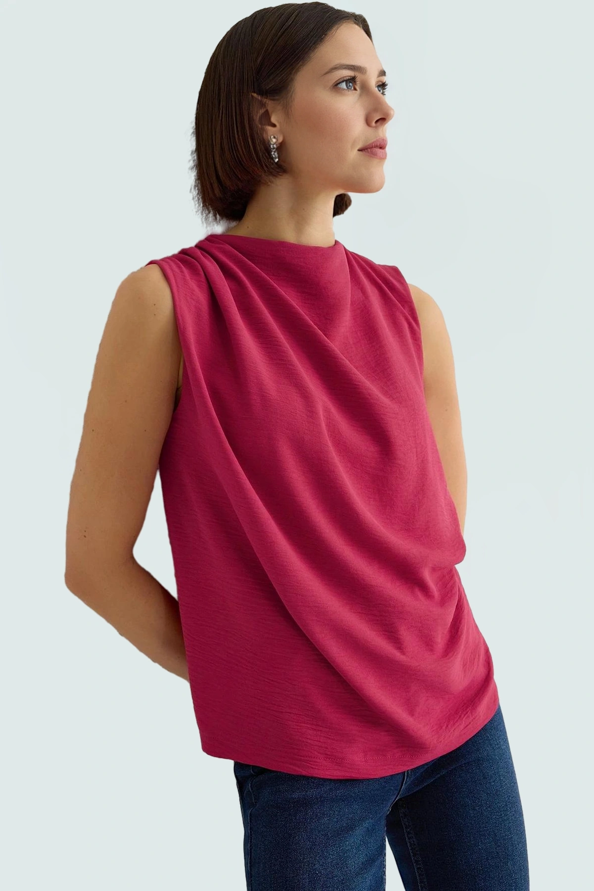 Günlük yaşamınız için mükemmel bir seçim olan bu kolsuz bluz, rahatlığı ve şıklığı bir araya getiriyor. Hafif ve nefes alan aerobin kumaştan üretilen bluz, yaz aylarında serin kalmanıza yardımcı olurken, bisiklet yakası ve modern tasarımıyla da tarzınızı yansıtır. Büzgü detaylarıyla hareketli bir görünüme sahip olan bluz, her türlü günlük aktivite için idealdir.