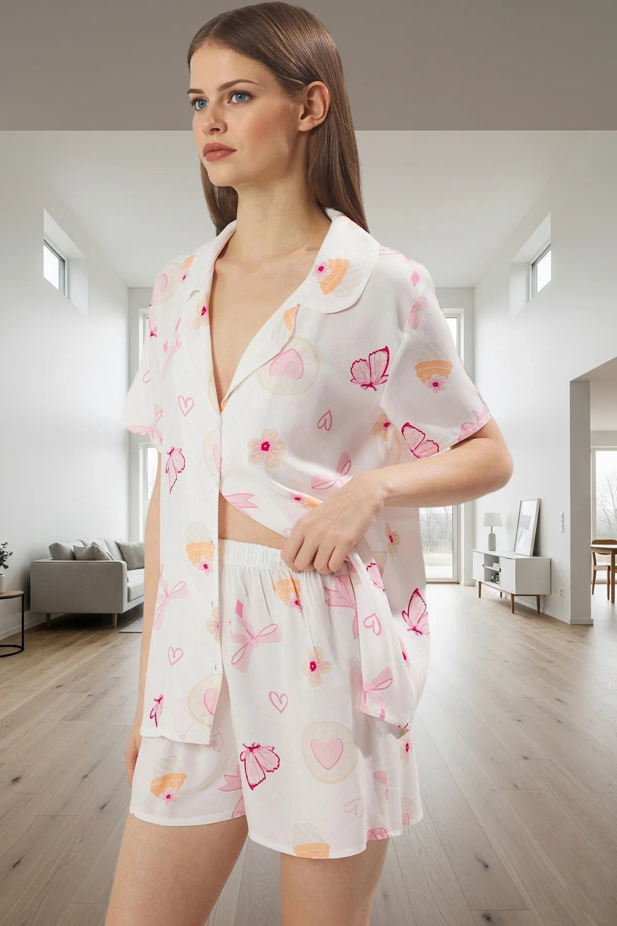 Yaz aylarında evde rahat ve şık hissetmek için mükemmel bir seçim olan bu pijama takımı, %100 viskoz kumaştan üretilmiştir. Nefes alan yapısı ve yumuşak dokusuyla gün boyu konfor sağlar. Eğlenceli ve sevimli baskılarla süslenmiş tasarımı, sizi özel ve mutlu hissettirir. Kısa kollu gömlek ve şorttan oluşan bu 2’li takım, regular kalıbıyla her vücut tipine uygundur. Boru paça şort ve gömlek yakasıyla tamamlanan tasarım, hem şık hem de rahat bir görünüm sunar. Makinede kolayca yıkanabilir olması da pratik kullanım sağlar. Bu pijama takımı ile evde dinlenirken veya uyurken maksimum konforu deneyimleyebilirsiniz.