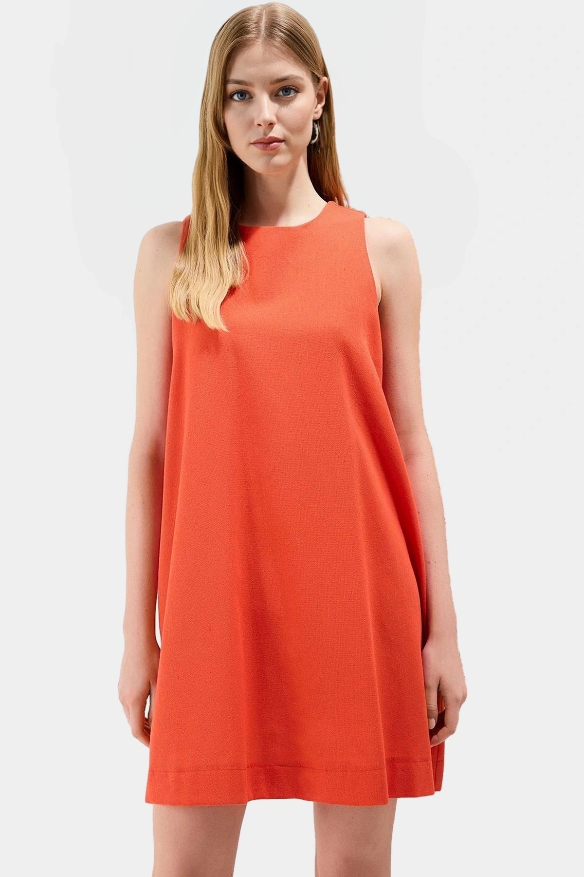 Yaz aylarının vazgeçilmez rahatlığı ve şıklığıyla buluşun! Kahverengi, geniş kesim, keten görünümlü mini elbisemiz, günlük yaşamınız için mükemmel bir seçim. Kolsuz tasarımıyla sıcak havalarda serin kalırken, rahat kesimiyle gün boyu konfor sunar. Doğal keten görünümüyle şıklığı yakalarken, yumuşak dokusuyla teninize nazik davranır. İş çıkışı arkadaşlarınızla buluşmalarda, alışverişte veya hafta sonu pikniğinizde, her yerde rahat ve şık görünmenizi sağlar.