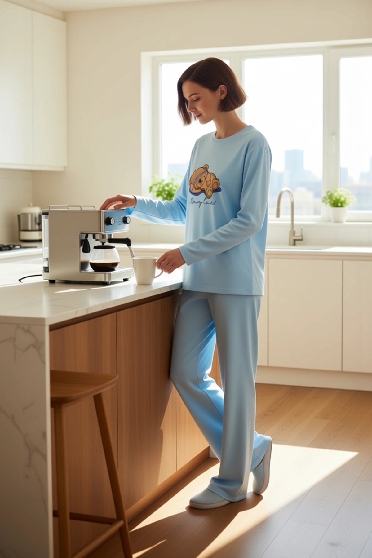 Rahat Kadın Ayıcık Temalı Pijama Takımı Fonksiyonel Dayanıklı Kaliteli Konforlu Estetik Şık