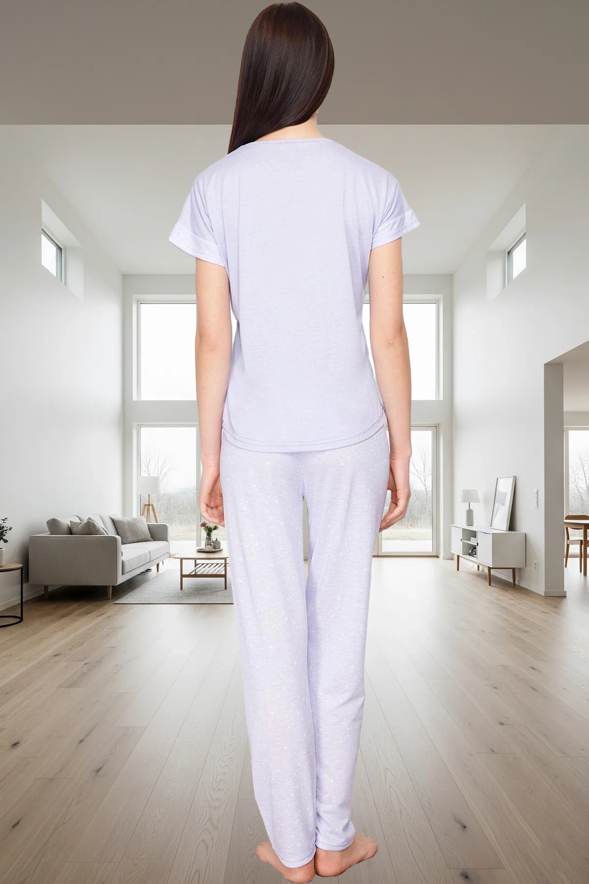 Viskoz polyester karışımı kumaş, dayanıklılığı ve yumuşaklığı bir araya getirir. Nefes alabilir yapısı sayesinde gün boyu konforlu bir kullanım sağlar. Ekose deseni ve lila rengi, modern ve şık bir görünüm kazandırır. Uzun paçaları ve rahat kesimiyle evde rahat hareket etmenizi sağlar. Yıkanması ve bakımı kolaydır, böylece zamanınızdan tasarruf etmenizi sağlar.