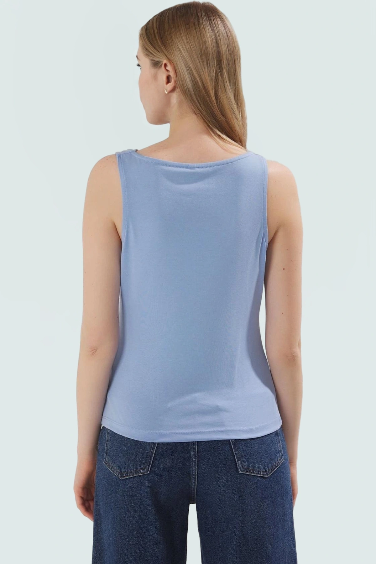 Bu kolsuz, mavi bluz, günlük hayatınızda rahatlık ve şıklığı bir araya getirmek isteyenler için ideal bir seçenek. Yüksek kaliteli modal kumaştan üretilen bluz, yumuşak dokusu ve nefes alabilir yapısı ile yaz aylarında bile sizi serin ve konforlu hissettirecek. Fitted kalıbıyla vücudunuza mükemmel şekilde otururken, degaje yakası da şık bir görünüm sağlıyor. Hem iş hem de günlük kombinlerinizde rahatlıkla kullanabileceğiniz bu bluz, çok yönlülüğüyle de dikkat çekiyor. Kot pantolon, şort veya eteklerle kombinleyerek kendi tarzınızı yaratabilirsiniz.